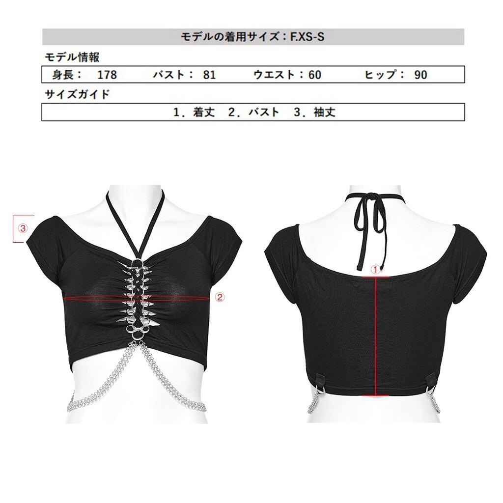 【即納/送料無料】WT-852TDF-BK ホルターネックデコルテ半袖ショート カットソー ファッション ゴシック ゴスロリ パンク ロック ロリィタ ビジュアル系 V系 モード系 地雷系 | ゴスロリワールド