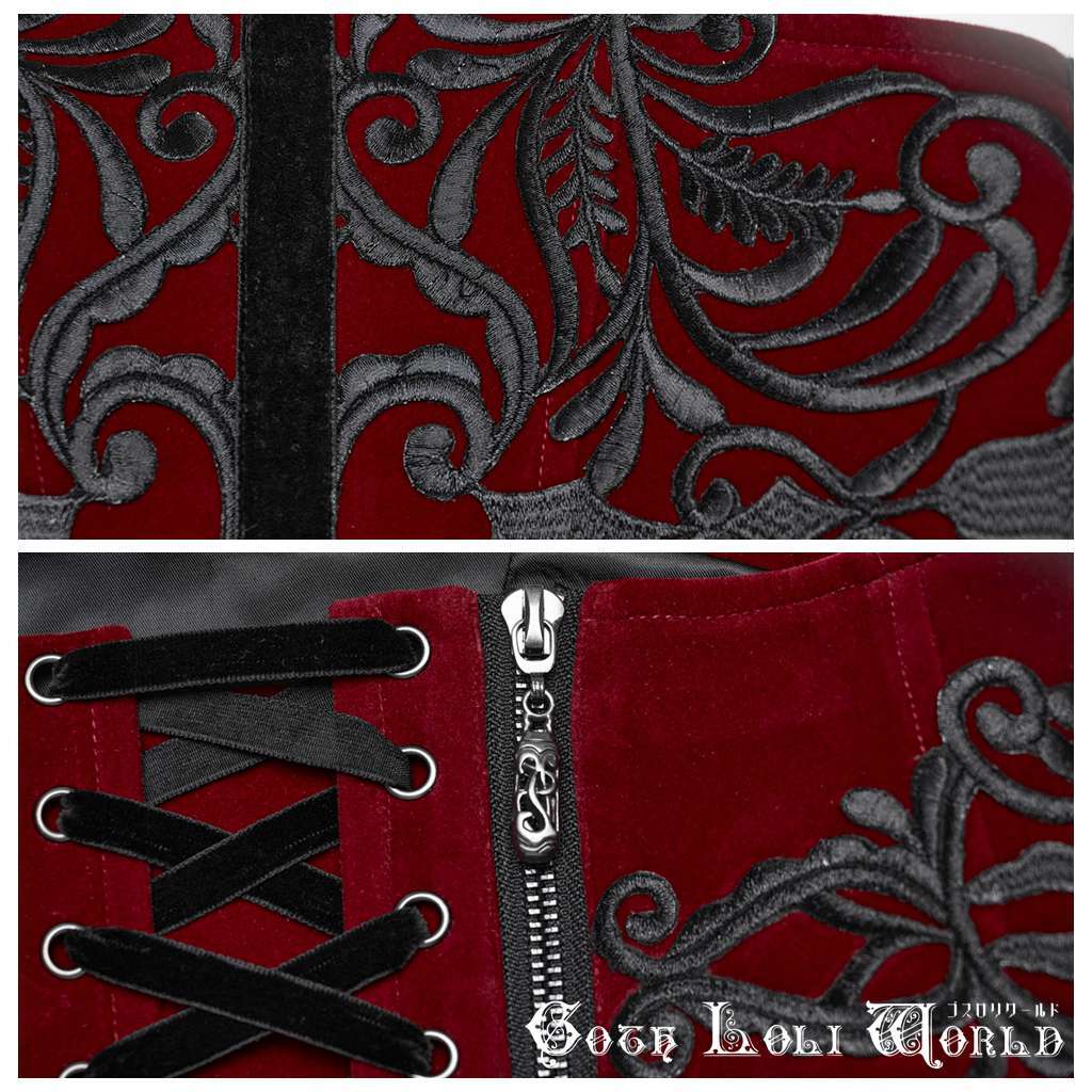 WS-616YDF-RD アラベスクエンブロイダリーファスナー コルセット 赤色 ファッション ゴシック ゴスロリ パンク ロック スチームパンク ビジュアル系 ヴィジュアル系 V系 モード系 地雷系 サブカル コスプレ ライブ ステージ 舞台 仮装 SM サイバー ハロウィン 衣装