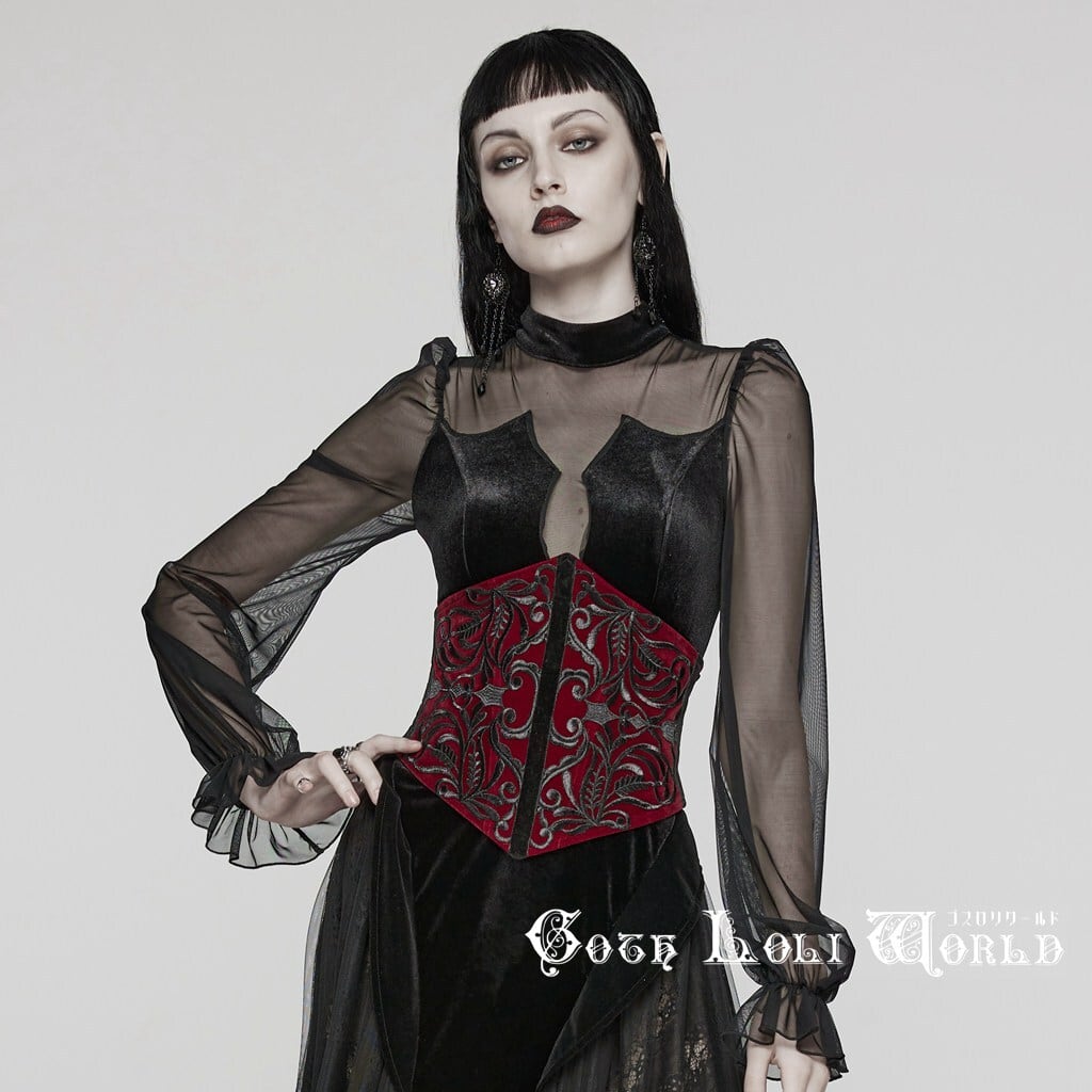 【即納/送料無料】WS-616YDF-RD アラベスクエンブロイダリーファスナー コルセット 赤色 ファッション ゴシック ゴスロリ パンク ロック ロリィタ ビジュアル系 V系 モード系 地雷系 | ゴスロリワールド