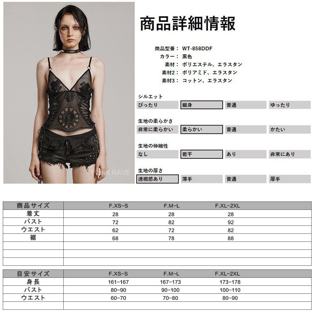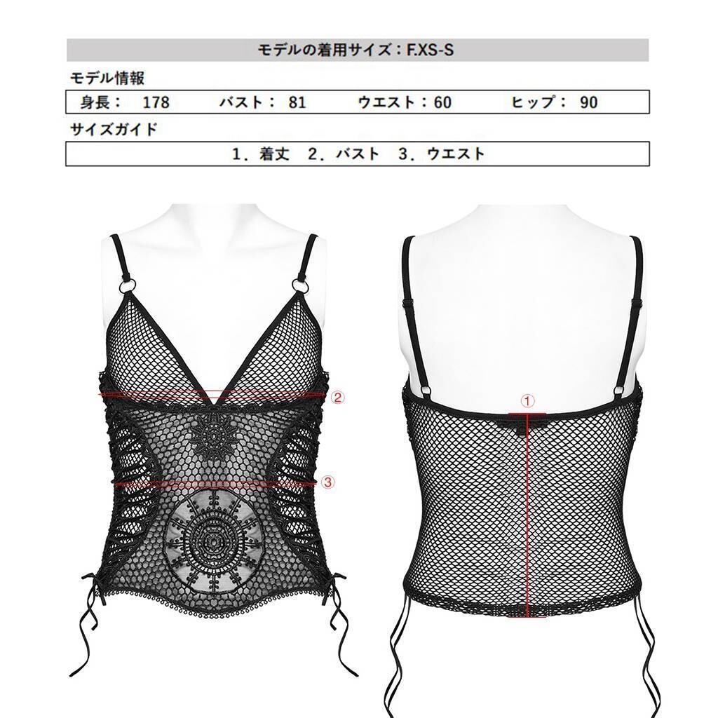 【即納/送料無料】WT-858DDF-BK ローゲージメッシュVネックシースルー キャミソール ファッション ゴシック ゴスロリ パンク ロック ロリィタ ビジュアル系 V系 モード系 地雷系 | ゴスロリワールド