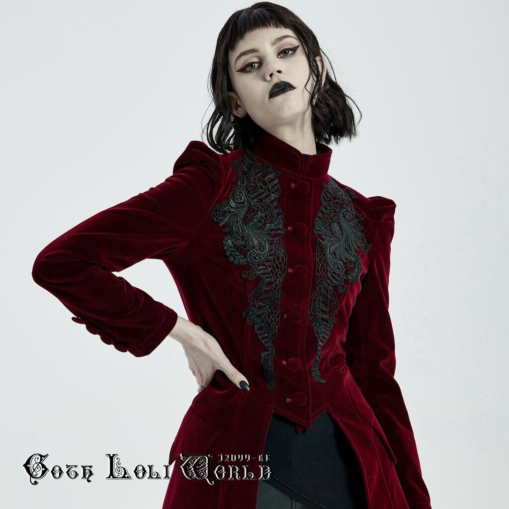 【即納/送料無料】WY-1306ECF-RD ゴシック ベルベット スタンドカラー ジャケット レッド ファッション ゴシック ゴスロリ パンク ロック ロリィタ ビジュアル系 V系 モード系 地雷系 | ゴスロリワールド