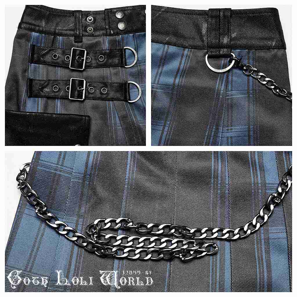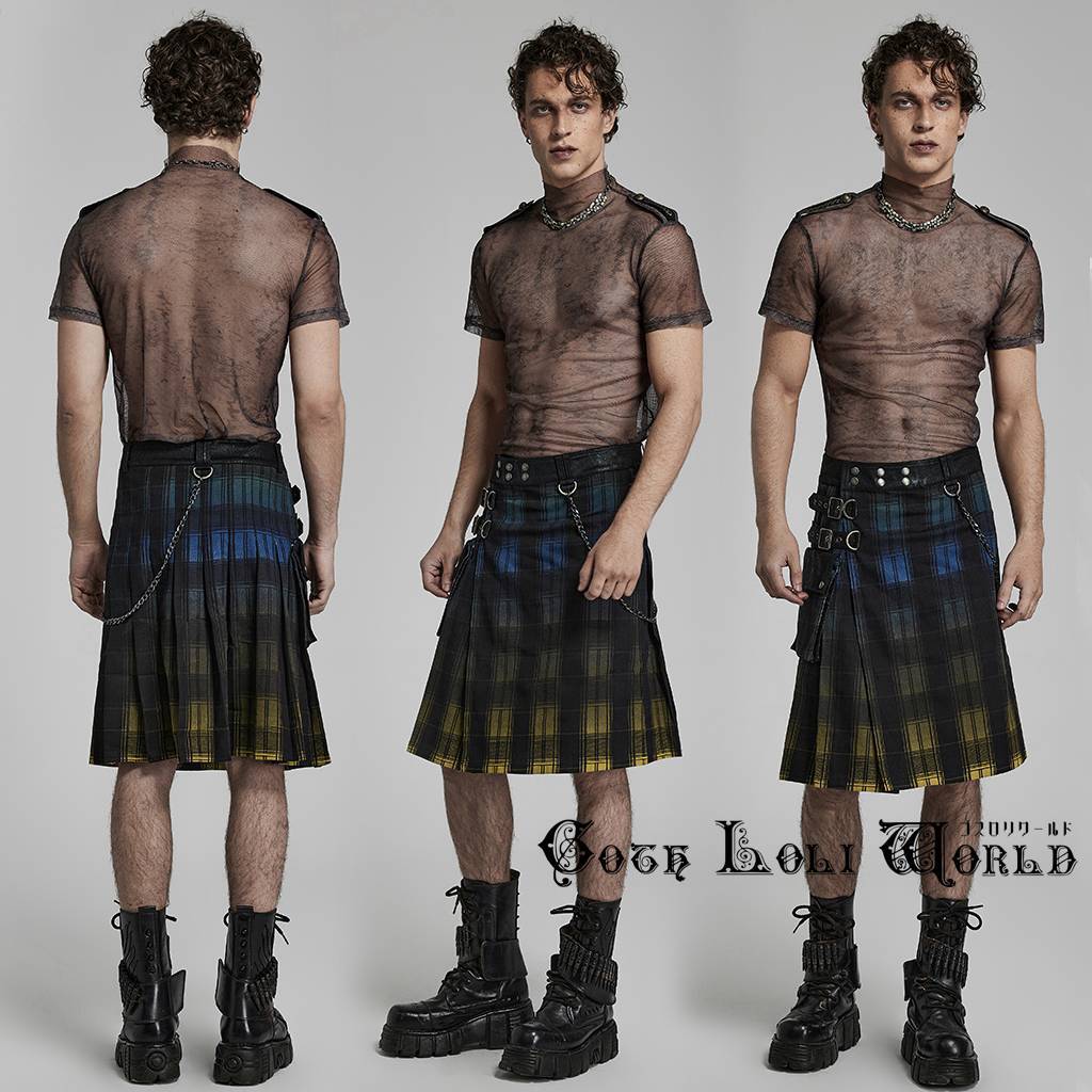 【即納/送料無料】WQ-632BQM-YE-BL チェック柄変則プリーツユニセックス スカート ファッション ゴシック ゴスロリ パンク ロック ロリィタ ビジュアル系 V系 モード系 地雷系 | ゴスロリワールド