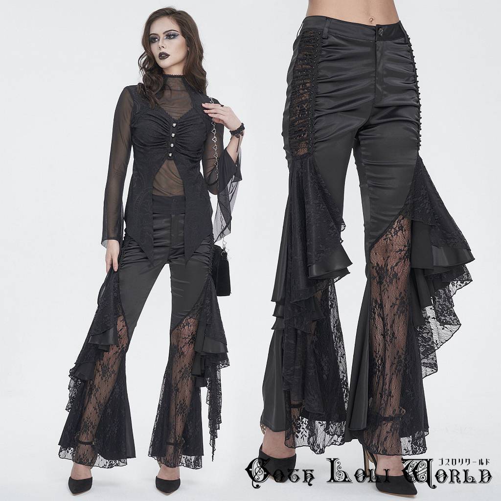 PT241 リッチ質感シースルーレースフレアラッフル パンツ ファッション ゴシック ゴスロリ パンク ロック スチームパンク ビジュアル系 ヴィジュアル系 V系 モード系 地雷系 サブカル コスプレ ライブ ステージ 舞台 仮装 SM サイバー ハロウィン 衣装