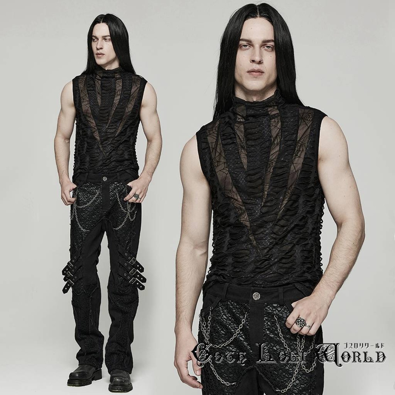 【即納/送料無料】WT-777BXM-BK スクラッチデザインダメージライクモックネック カットソー メンズ ファッション ゴシック ゴスロリ パンク ロック ロリィタ ビジュアル系 V系 モード系 地雷系 | ゴスロリワールド