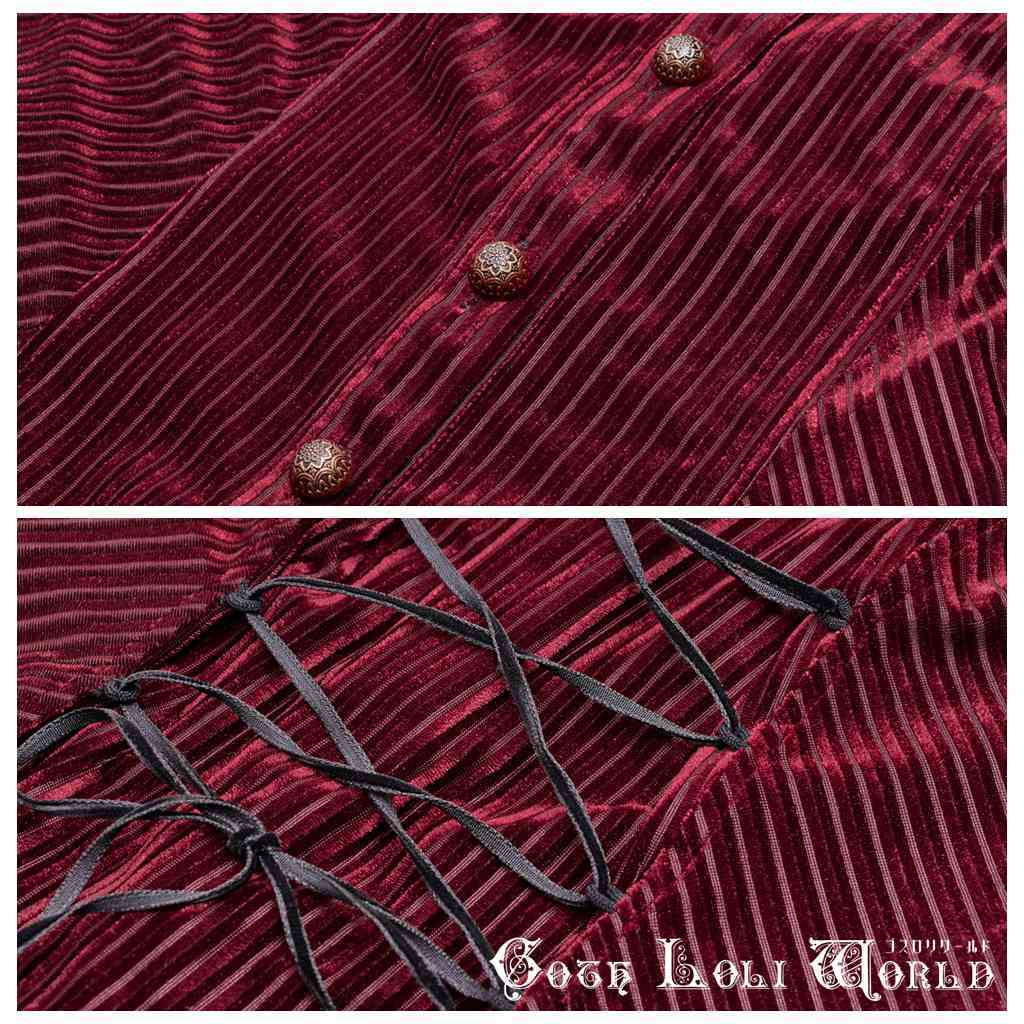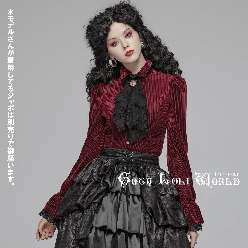 【即納/送料無料】WY-1041CCF-RD ダークベルベットストライプ長袖 ブラウス 赤色 ファッション ゴシック ゴスロリ パンク ロック ロリィタ ビジュアル系 V系 モード系 地雷系 | ゴスロリワールド