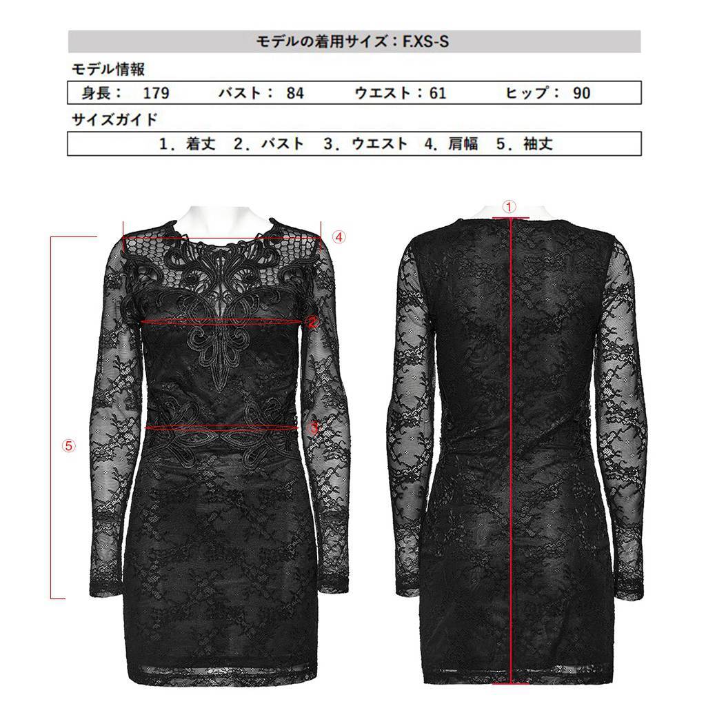 【即納/送料無料】WQ-698LQF-BK シースルーエンブロイダリー長袖タイト チュニック ファッション ゴシック ゴスロリ パンク ロック ロリィタ ビジュアル系 V系 モード系 地雷系 | ゴスロリワールド