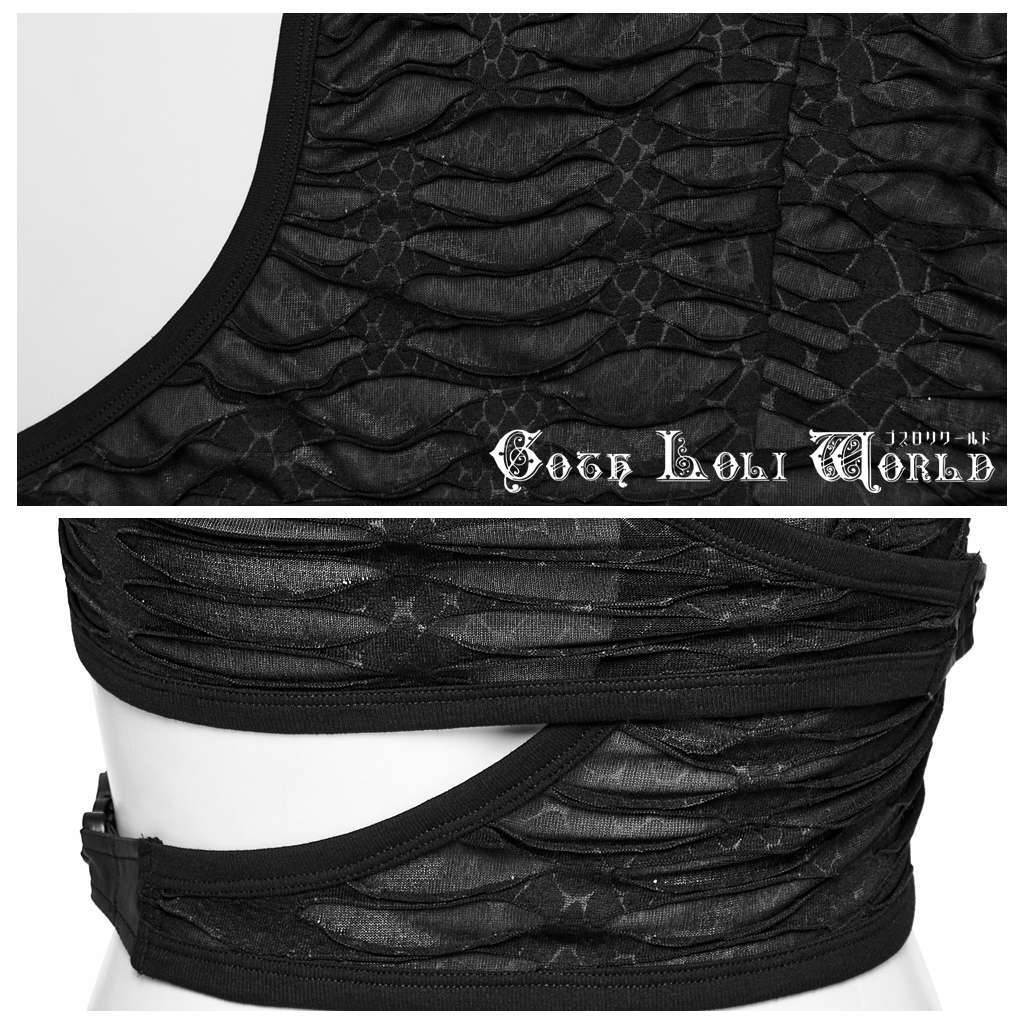 【即納/送料無料】WT-867BXF-BK シースルーアバンギャルド変形ショート タンクトップ 黒色 ファッション ゴシック ゴスロリ パンク ロック ロリィタ ビジュアル系 V系 モード系 地雷系 | ゴスロリワールド