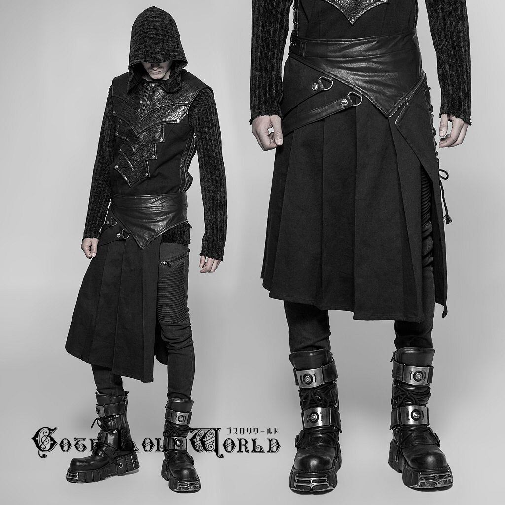 【即納/送料無料】WQ-372BQM-BK アシメレースアップハーフプリーツ スカート メンズ ファッション ゴシック ゴスロリ パンク ロック ロリィタ ビジュアル系 V系 モード系 地雷系 | ゴスロリワールド