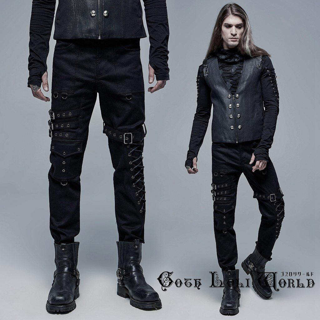 【即納/送料無料】WK-469XCM-BK レースアップベルトデザイン ロングパンツ 黒色 ファッション ゴシック ゴスロリ パンク ロック ロリィタ ビジュアル系 V系 モード系 地雷系 | ゴスロリワールド