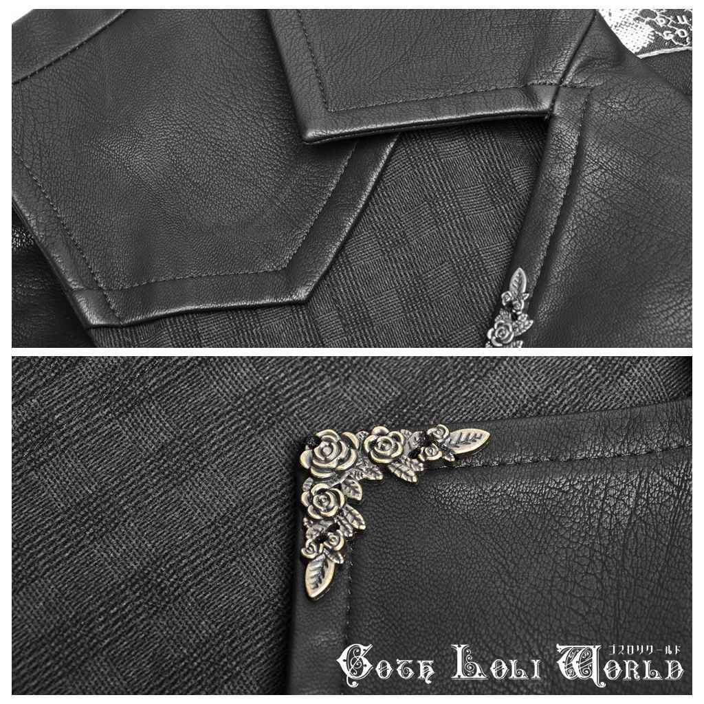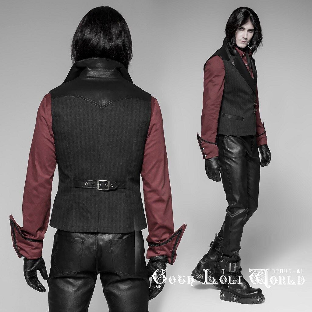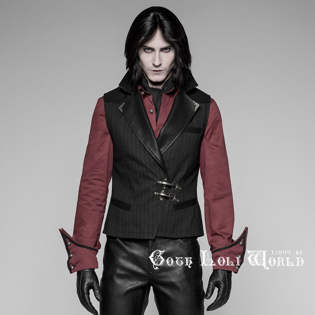 WY-929MJM-BK チェック柄異素材切り替え襟 ベスト ファッション ゴシック ゴスロリ パンク ロック スチームパンク ビジュアル系 ヴィジュアル系 V系 モード系 地雷系 サブカル コスプレ ライブ ステージ 舞台 仮装 SM サイバー ハロウィン 衣装