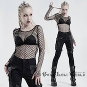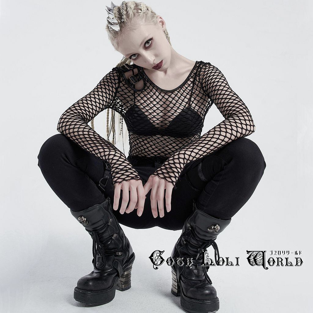 【即納/送料無料】WT-627TCF-BK ショルダーホロウパンクメッシュカットソー 黒色 ファッション ゴシック ゴスロリ パンク ロック ロリィタ ビジュアル系 V系 モード系 地雷系 | ゴスロリワールド