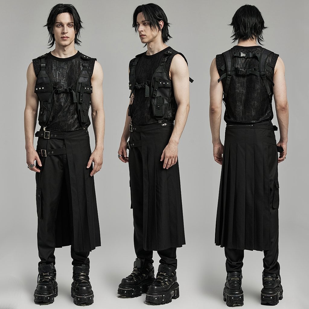 WQ-736BQM-BK アシンメトリーダブルベルトプリーツ カバースカート ファッション ゴシック ゴスロリ パンク ロック スチームパンク ビジュアル系 ヴィジュアル系 V系 モード系 地雷系 サブカル コスプレ ライブ ステージ 舞台 仮装 SM サイバー ハロウィン 衣装