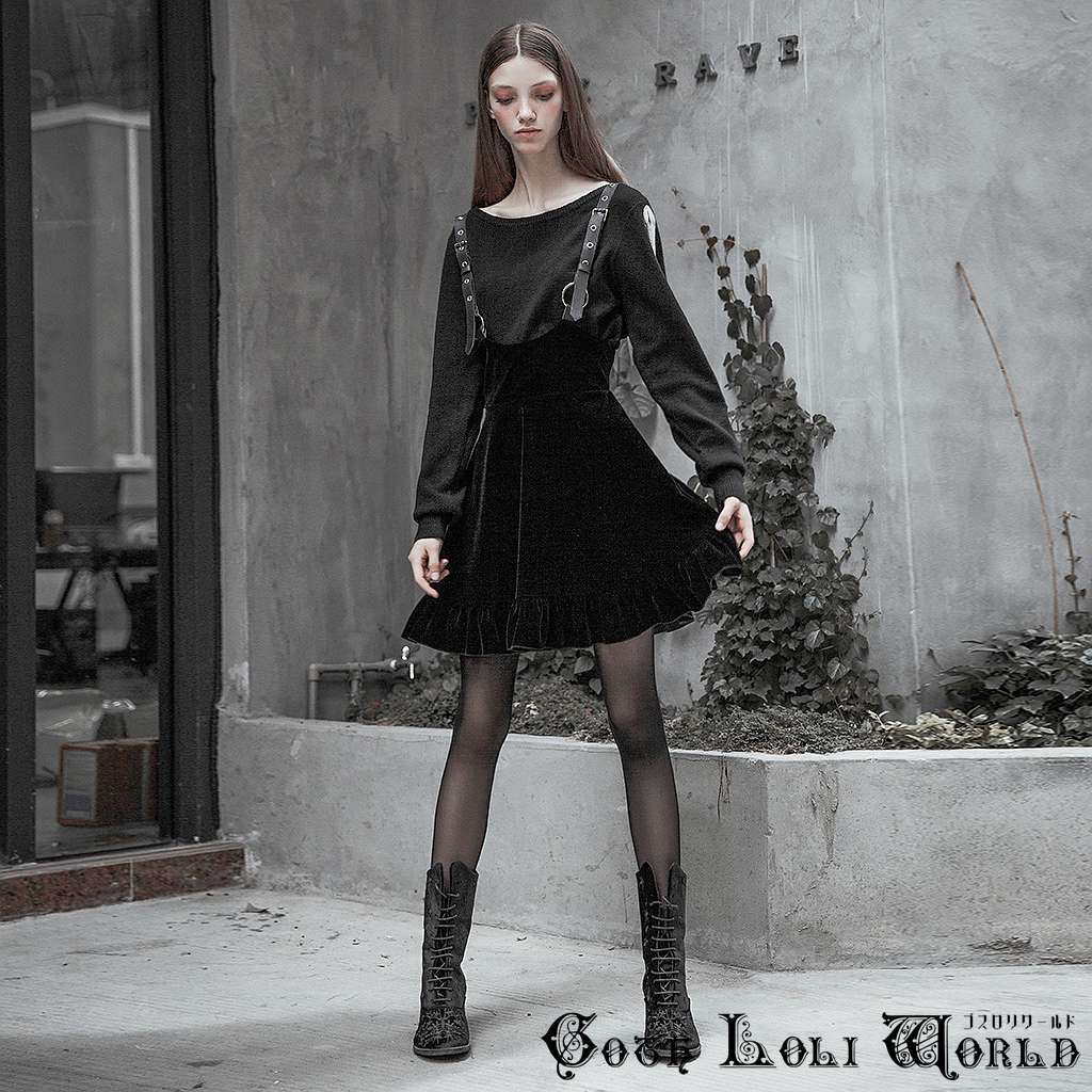 【即納/送料無料】OPQ-434BQF-BK フェイクレザーショルダーストラップ付 ジャンパースカート ファッション ゴシック ゴスロリ パンク ロック ロリィタ ビジュアル系 V系 モード系 地雷系 | ゴスロリワールド