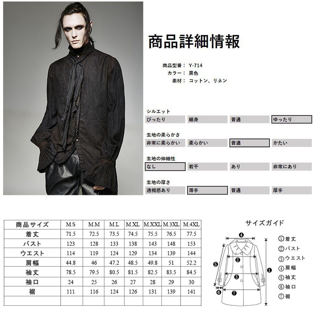 【即納/送料無料】Y-714-BK ムラ染め ダメージ 長袖 ブラウス ブラック 黒色 メンズ ファッション ゴシック ゴスロリ パンク ロック ロリィタ ビジュアル系 V系 モード系 地雷系 | ゴスロリワールド