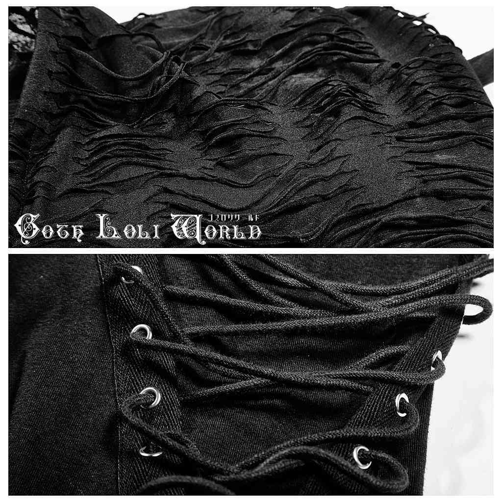 【即納/送料無料】T-438M-BK 編上げダメージフード長袖 カットソー メンズ ファッション ゴシック ゴスロリ パンク ロック ロリィタ ビジュアル系 V系 モード系 地雷系 | ゴスロリワールド