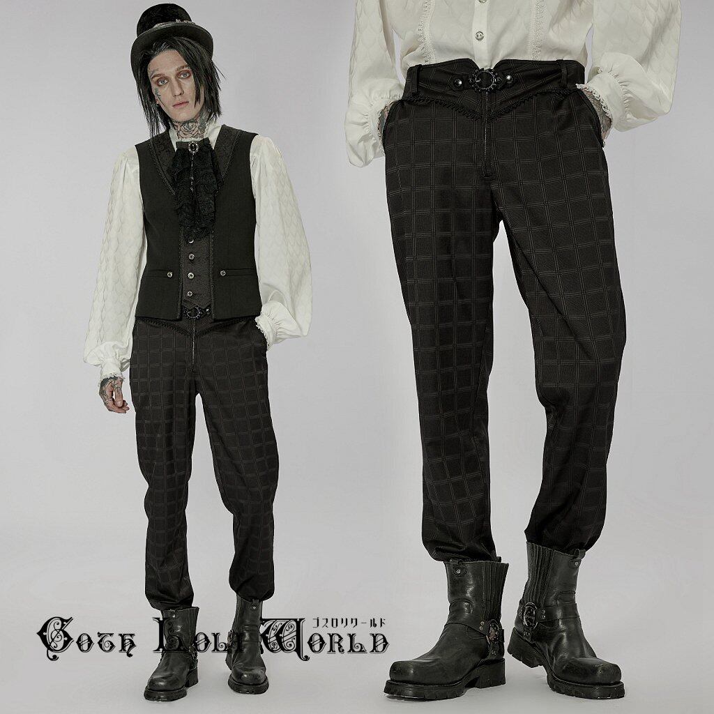 【即納/送料無料】WK-528XCM-BK ゴシック格子柄ベルト風 ロングパンツ ファッション ゴシック ゴスロリ パンク ロック ロリィタ ビジュアル系 V系 モード系 地雷系 | ゴスロリワールド