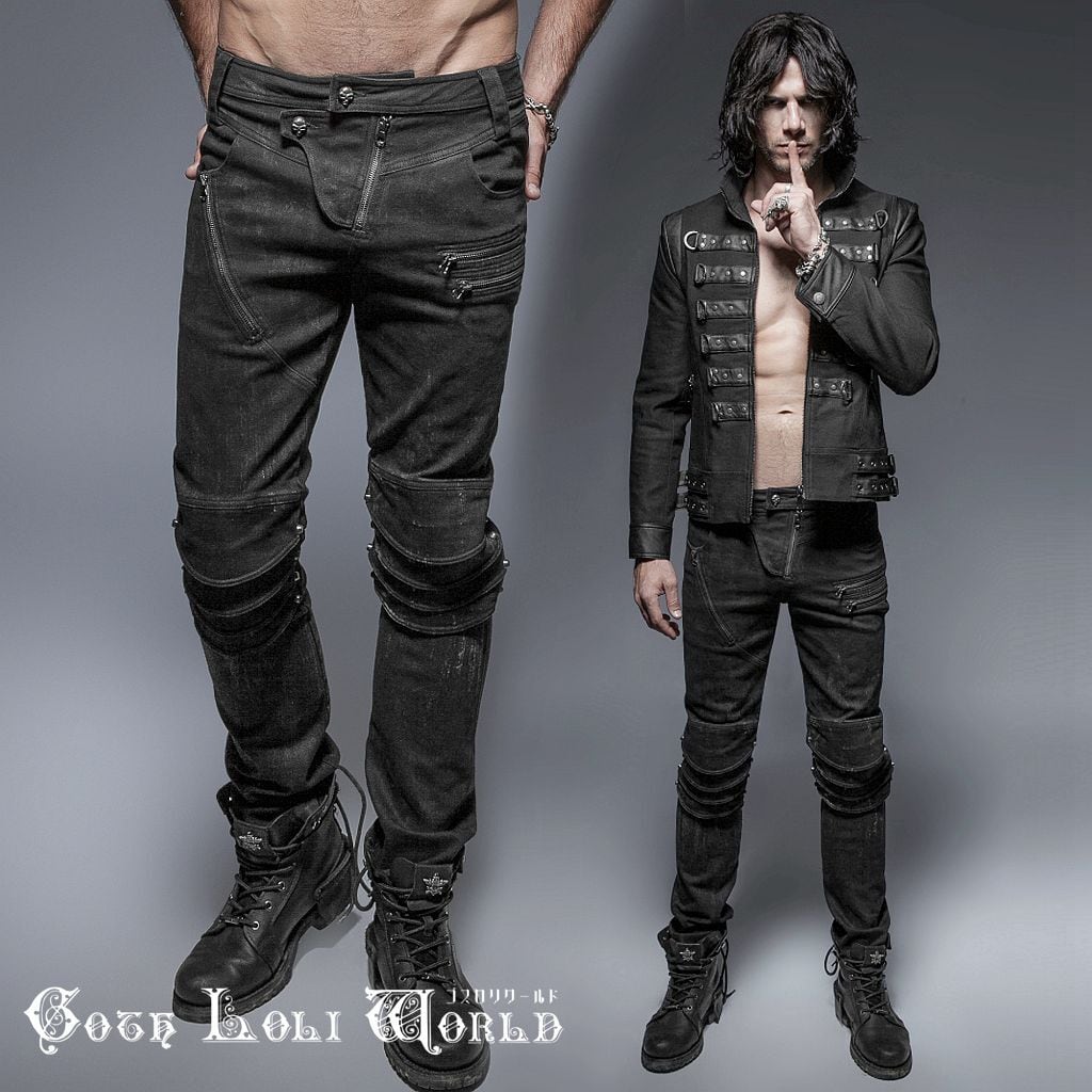 K-239-BK パンクアルモアワークスキニー デニムパンツ ファッション ゴシック ゴスロリ パンク ロック スチームパンク ビジュアル系 ヴィジュアル系 V系 モード系 地雷系 サブカル コスプレ ライブ ステージ 舞台 仮装 SM サイバー ハロウィン 衣装