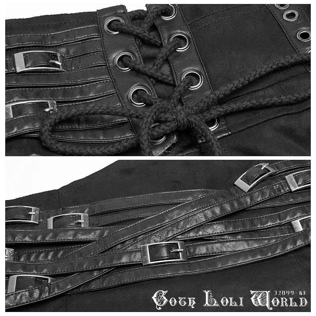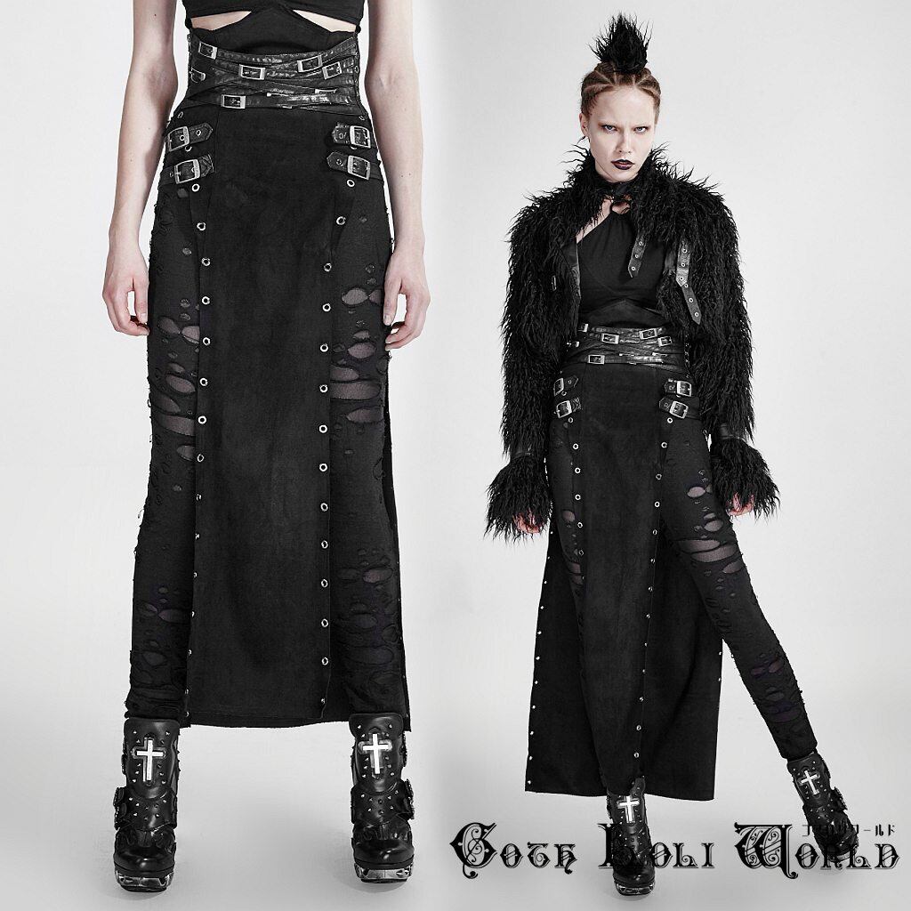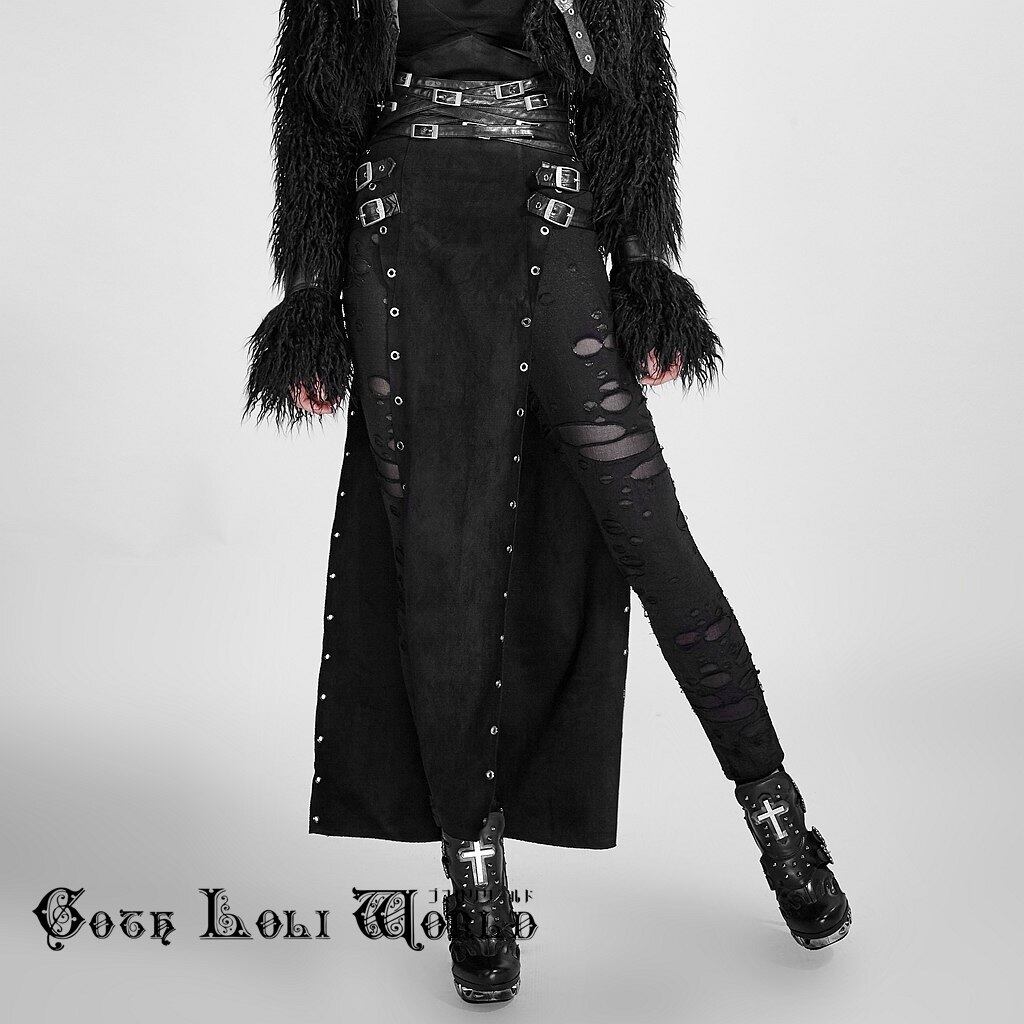 Q-298F-BK スプリットロング カバースカート レディース ファッション ゴシック ゴスロリ パンク ロック スチームパンク ビジュアル系 ヴィジュアル系 V系 モード系 地雷系 サブカル コスプレ ライブ ステージ 舞台 仮装 SM サイバー ハロウィン 衣装
