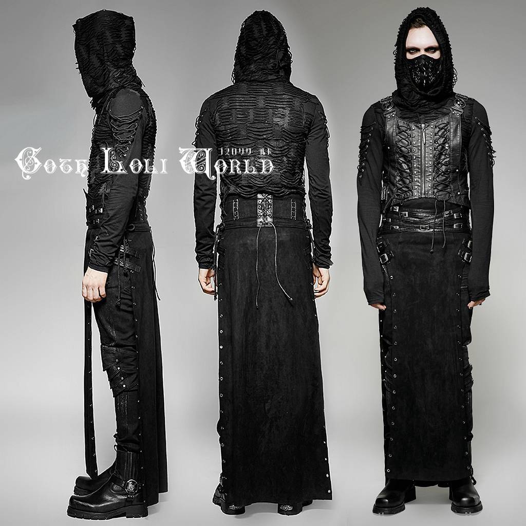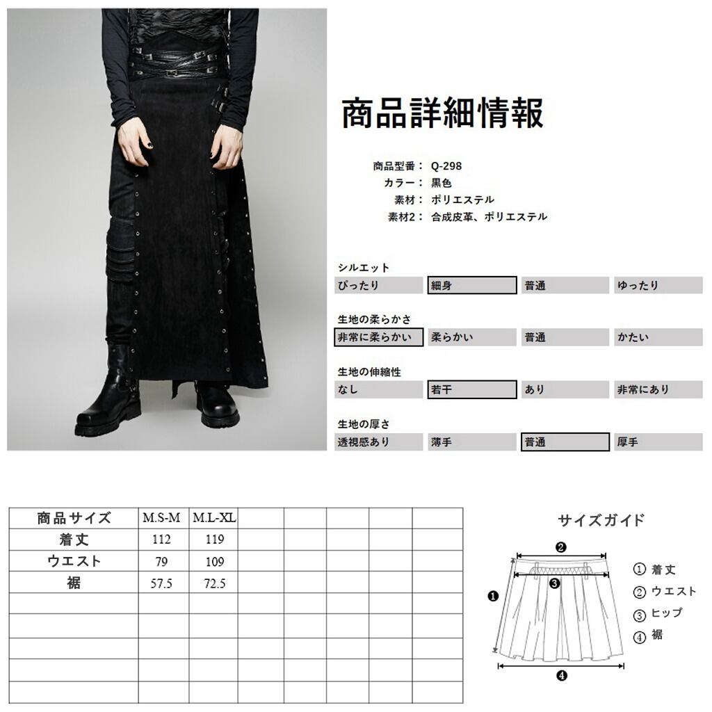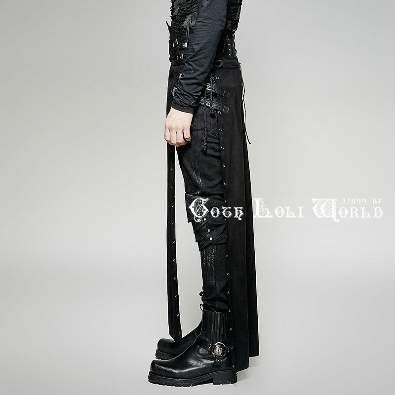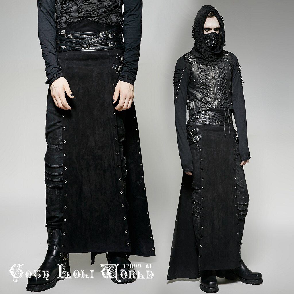 Q-298M-BK スプリットロングカバースカート メンズ ファッション ゴシック ゴスロリ パンク ロック スチームパンク ビジュアル系 ヴィジュアル系 V系 モード系 地雷系 サブカル コスプレ ライブ ステージ 舞台 仮装 SM サイバー ハロウィン 衣装