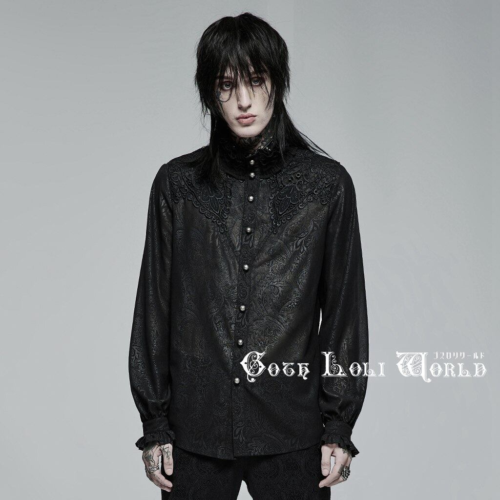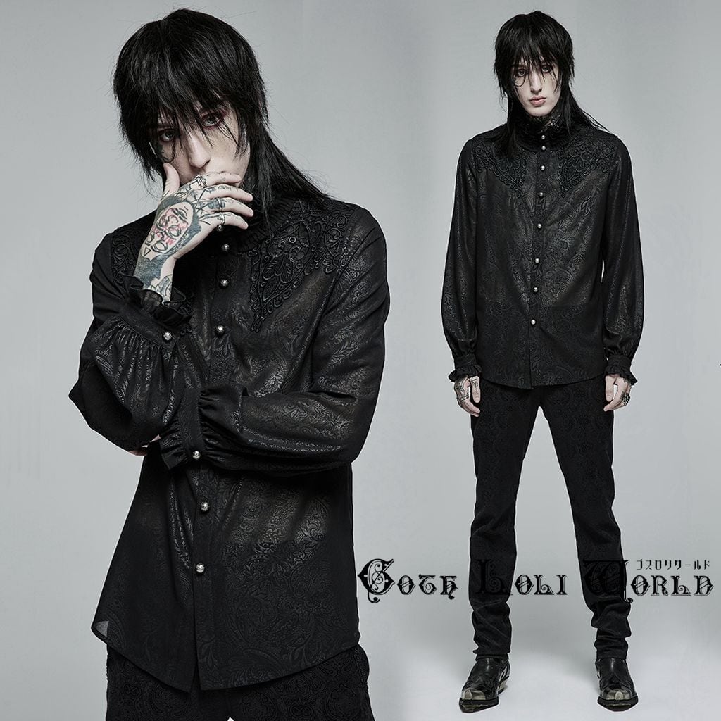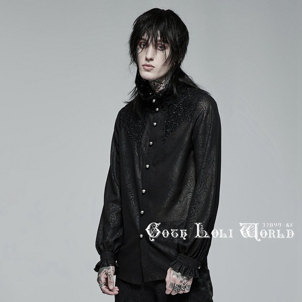 【即納/送料無料】WY-1380XCM-BK エレガントスタンドカラーフジャガード ブラウス メンズ 黒色 ファッション ゴシック ゴスロリ パンク ロック ロリィタ ビジュアル系 V系 モード系 地雷系 | ゴスロリワールド