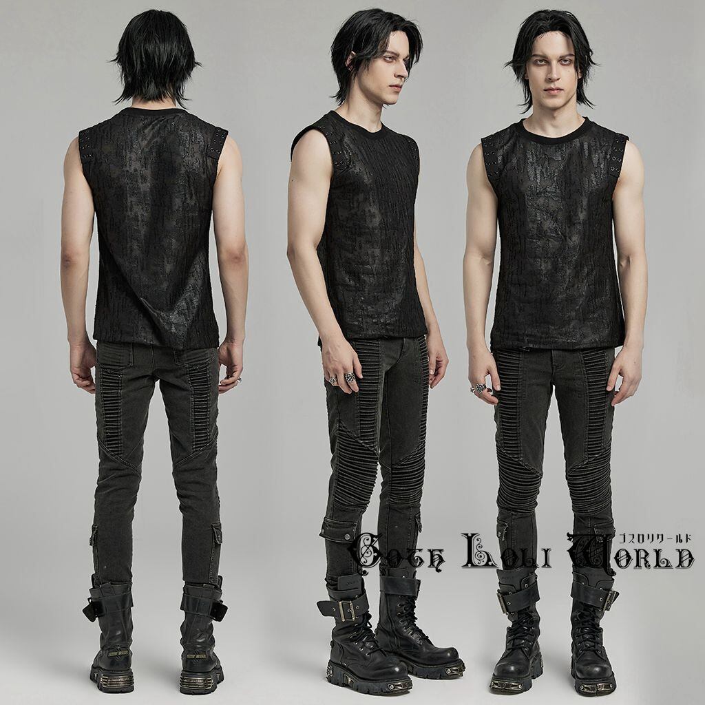 【即納/送料無料】 WT-887BXM-BK ダメージマーブルモックネック タンクトップ 黒色 メンズ ファッション ゴシック ゴスロリ パンク ロック ロリィタ ビジュアル系 V系 モード系 地雷系 | ゴスロリワールド