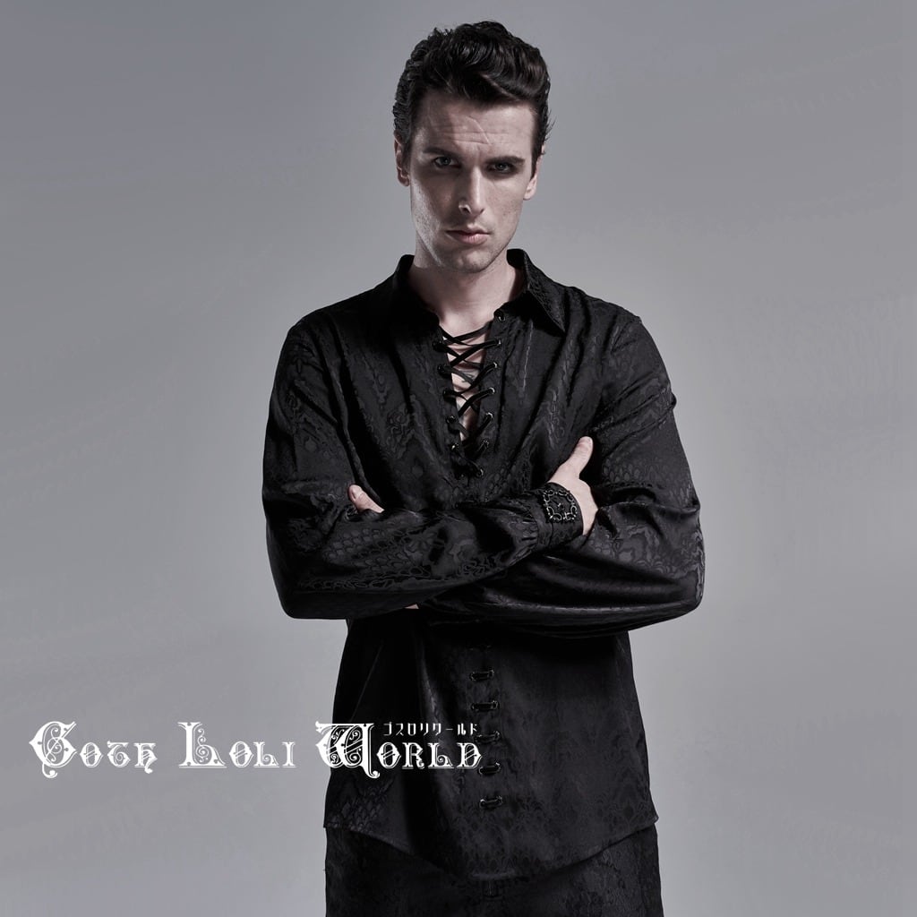 【即納/送料無料】WY-1279CCM-BK ゴシックジャガードレースアップ カットソー 黒色 メンズ ファッション ゴシック ゴスロリ パンク ロック ロリィタ ビジュアル系 V系 モード系 地雷系 | ゴスロリワールド