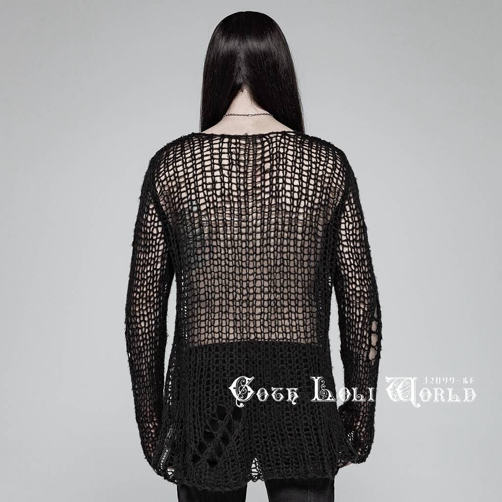 OPM-004-BKM ダメージ 穴あき ニット ブラック メンズ 黒色 ファッション ゴシック ゴスロリ パンク ロック スチームパンク ビジュアル系 ヴィジュアル系 V系 モード系 地雷系 サブカル コスプレ ライブ ステージ 舞台 仮装 SM サイバー ハロウィン 衣装