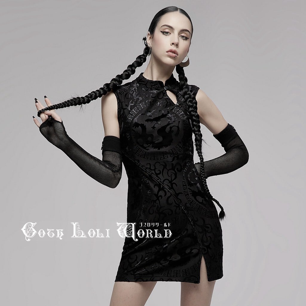 【即納/送料無料】OPQ-1219LQF-BK ドラゴンチャイナドレスミニ ワンピース 黒色 ファッション ゴシック ゴスロリ パンク ロック ロリィタ ビジュアル系 V系 モード系 地雷系 | ゴスロリワールド