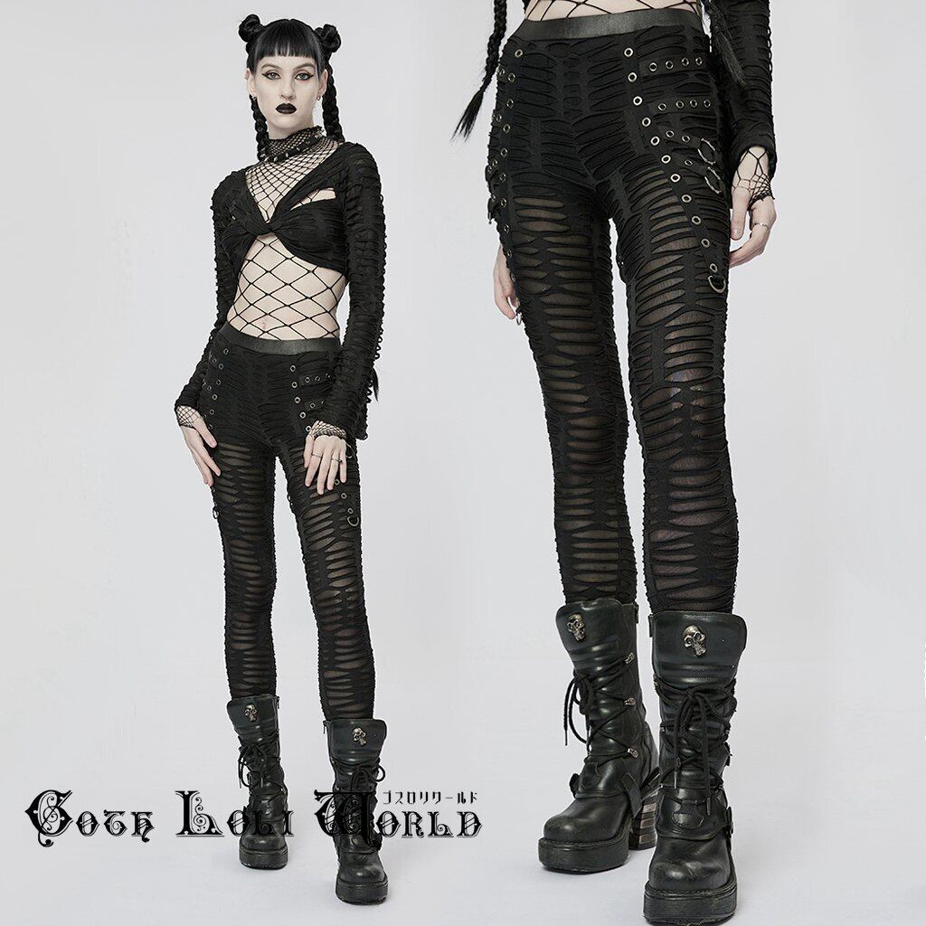 【即納/送料無料】WK-537DQF-BK ブラックダメージ風 レギンス パンツ 黒色 ファッション ゴシック ゴスロリ パンク ロック ロリィタ ビジュアル系 V系 モード系 地雷系 | ゴスロリワールド