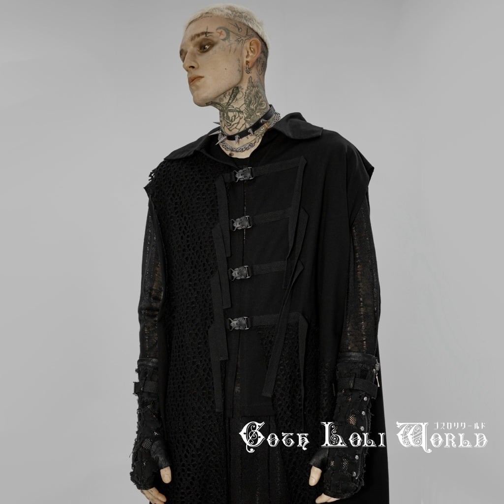 【即納/送料無料】WY-1451ZCM-BK フロントバックルメッシュドッキングロング ベスト 黒色 メンズ ファッション ゴシック ゴスロリ パンク ロック ロリィタ ビジュアル系 V系 モード系 地雷系 | ゴスロリワールド