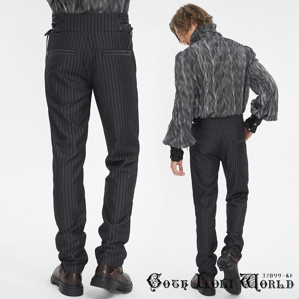【即納/送料無料】PT24801 ウエストレースアップストライプスラックスタック パンツ ファッション ゴシック ゴスロリ パンク ロック スチームパンク ビジュアル系 ヴィジュアル系 V系 モード系 地雷系 サブカル コスプレ ライブ ステージ 舞台 仮装 個性的 ハロウィン 衣装 | ゴスロリワールド