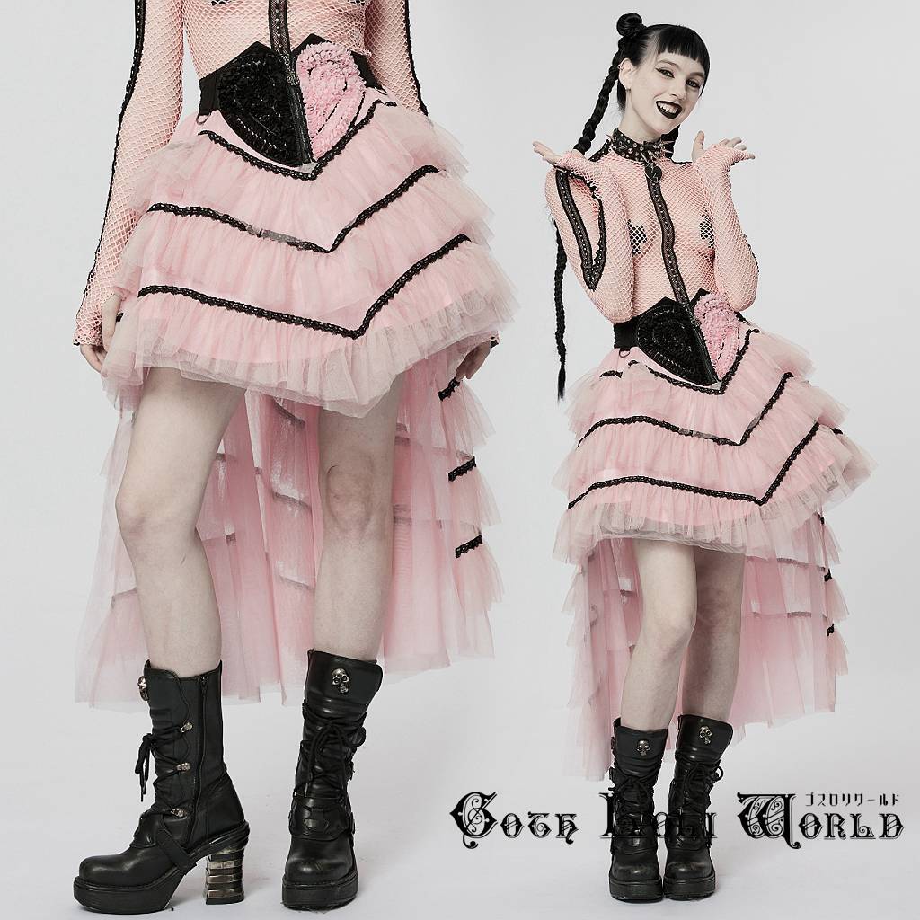 【即納/送料無料】WLQ-105BQF-BK-PK フロントファスナーティアードチュール スカート ピンク ファッション ゴシック ゴスロリ パンク ロック ロリィタ ビジュアル系 V系 モード系 地雷系 | ゴスロリワールド