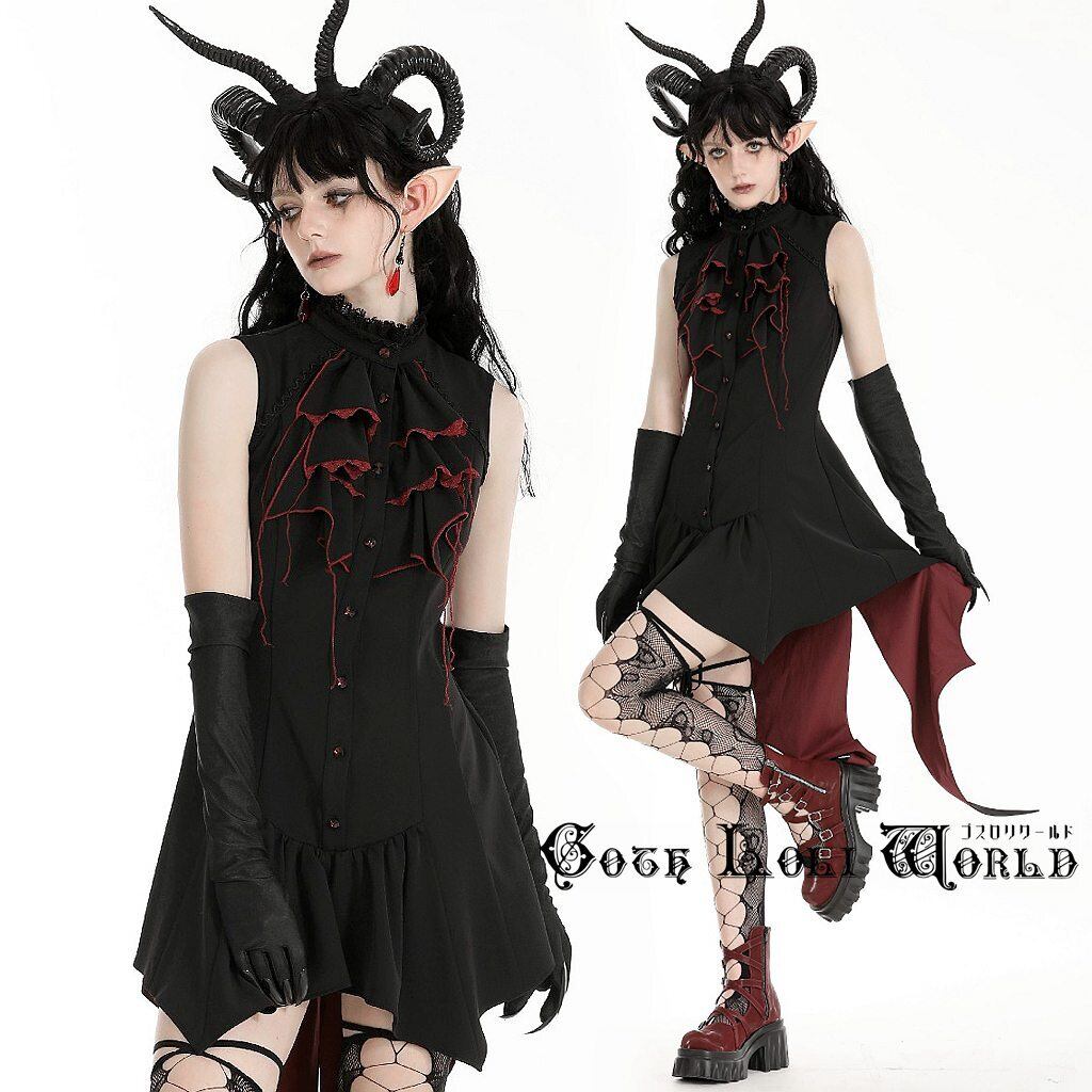 DW958 ヴァンパイアラッフルベスト ワンピース ファッション ゴシック ゴスロリ パンク ロック スチームパンク ビジュアル系 ヴィジュアル系 V系 モード系 地雷系 サブカル コスプレ ライブ ステージ 舞台 仮装 SM サイバー ハロウィン 衣装