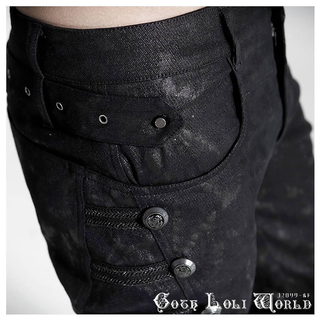 【即納/送料無料】K-136M-BK サイドボタンデザイン ロングパンツ 黒色 メンズ ファッション ゴシック ゴスロリ パンク ロック ロリィタ ビジュアル系 V系 モード系 地雷系 | ゴスロリワールド
