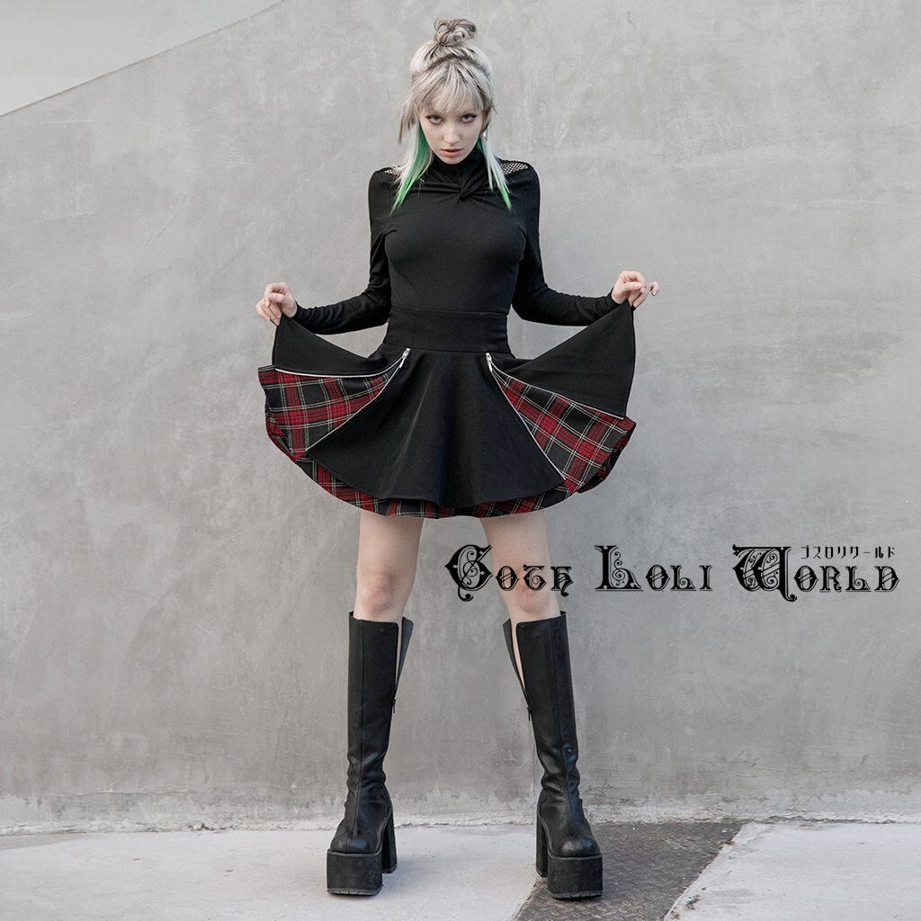 【即納/送料無料】OPQ-948BQF-BK-RD ティアードフレアミニチェック ミニスカート 黒色 ファッション ゴシック ゴスロリ パンク ロック ロリィタ ビジュアル系 V系 モード系 地雷系 | ゴスロリワールド