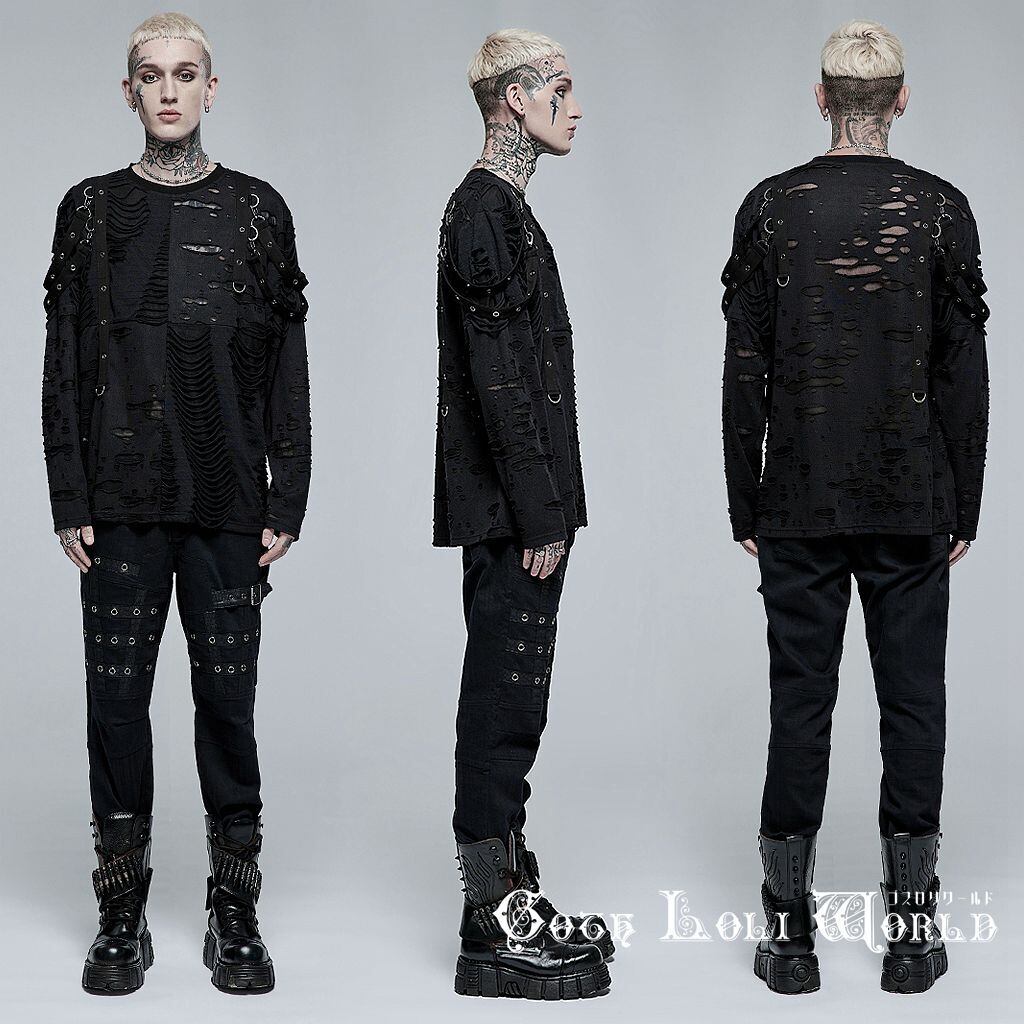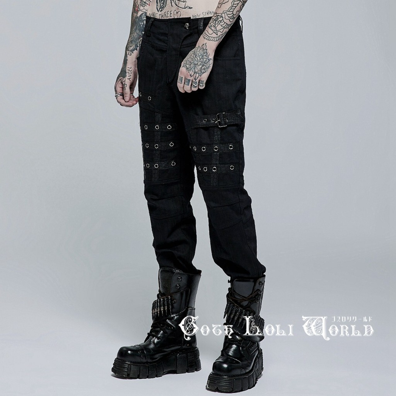 【即納/送料無料】WK-497XCM-BK パンクベルトウーブンデザイン ロングパンツ 黒色 メンズ ファッション ゴシック ゴスロリ パンク ロック ロリィタ ビジュアル系 V系 モード系 地雷系 | ゴスロリワールド
