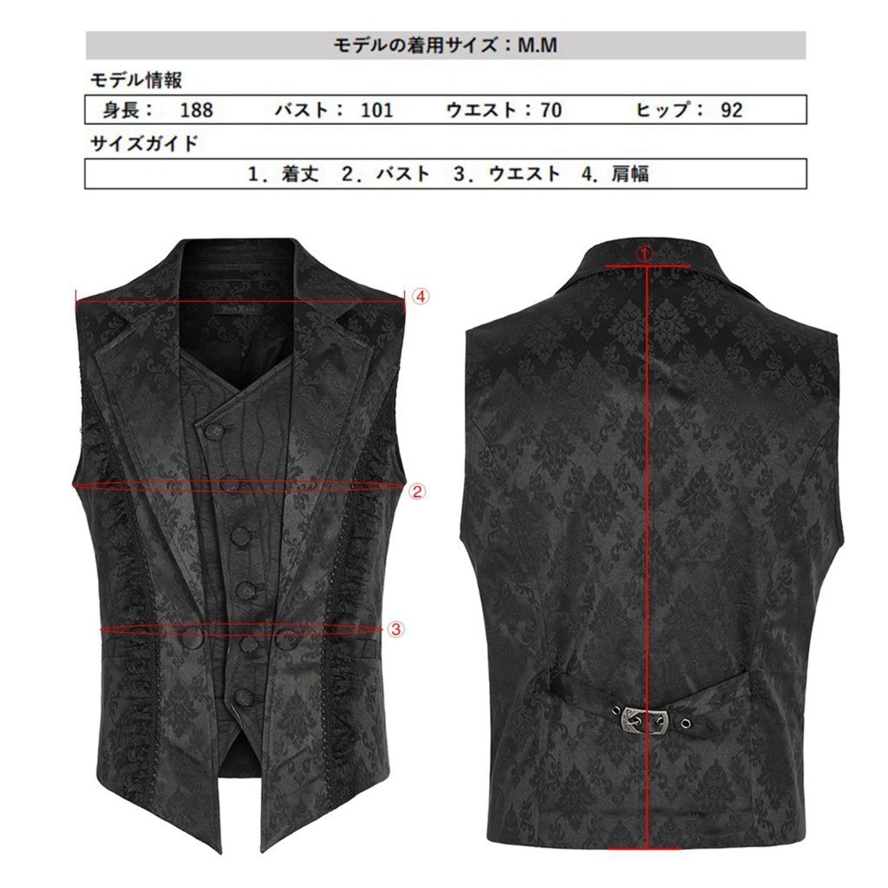 WY-1469MJM-BK ダマスク柄重ね着風ウエストコート ベスト メンズ ファッション ゴシック ゴスロリ パンク ロック スチームパンク ビジュアル系 ヴィジュアル系 V系 モード系 地雷系 サブカル コスプレ ライブ ステージ 舞台 仮装 SM サイバー ハロウィン 衣装