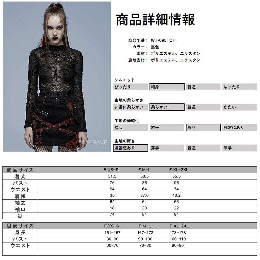 【即納/送料無料】WT-695TCF-BK シースルースパイダーメッシュ カットソー ブラック ファッション ゴシック ゴスロリ パンク ロック ロリィタ ビジュアル系 V系 モード系 地雷系 | ゴスロリワールド