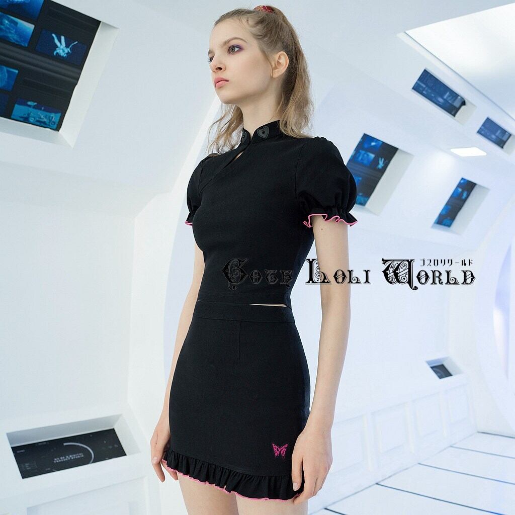 【即納/送料無料】OPQ-781BQF-BK バタフライエンブロイダリータイト ミニスカート 黒色 ファッション ゴシック ゴスロリ パンク ロック ロリィタ ビジュアル系 V系 モード系 地雷系 | ゴスロリワールド