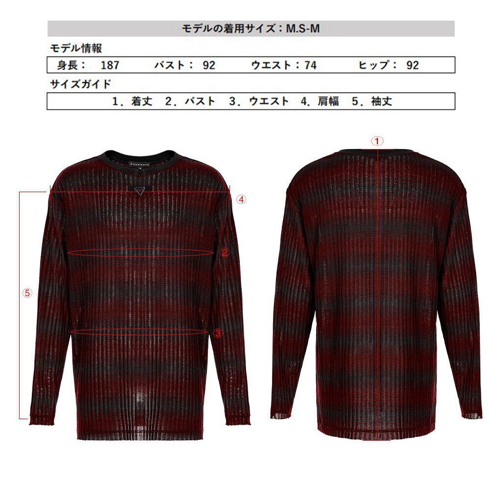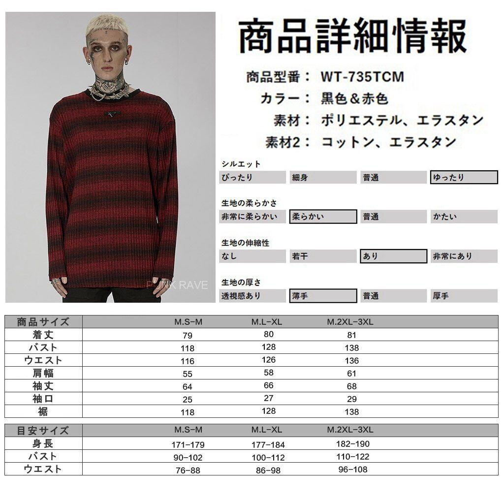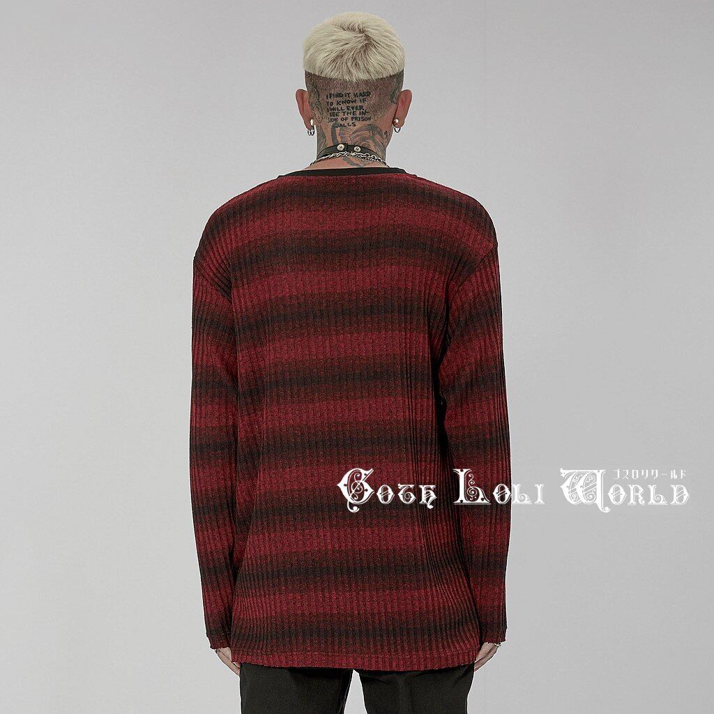 WT-735TCM-BK-RD パンク風ストライプ セーター ニットソー 黒赤色 メンズ ファッション ゴシック ゴスロリ パンク ロック スチームパンク ビジュアル系 ヴィジュアル系 V系 モード系 地雷系 サブカル コスプレ ライブ ステージ 舞台 仮装 SM サイバー ハロウィン 衣装