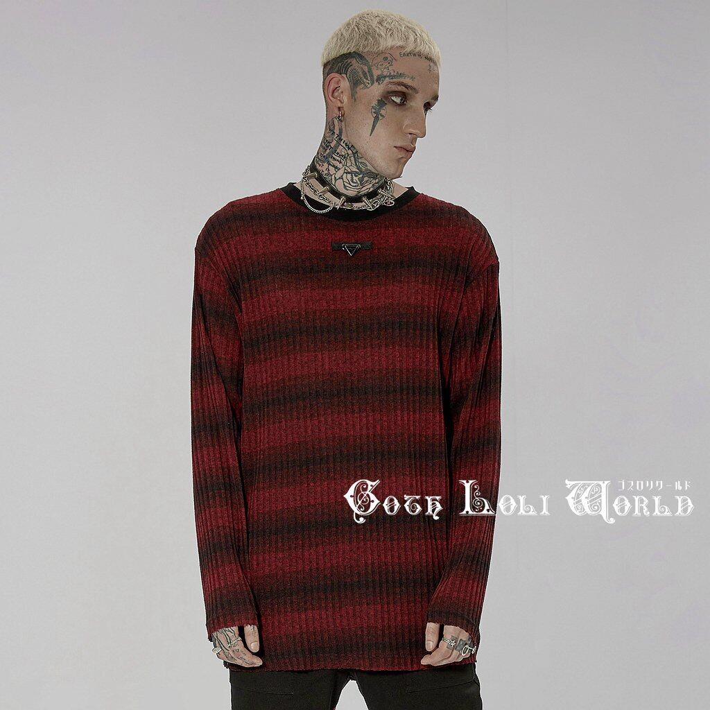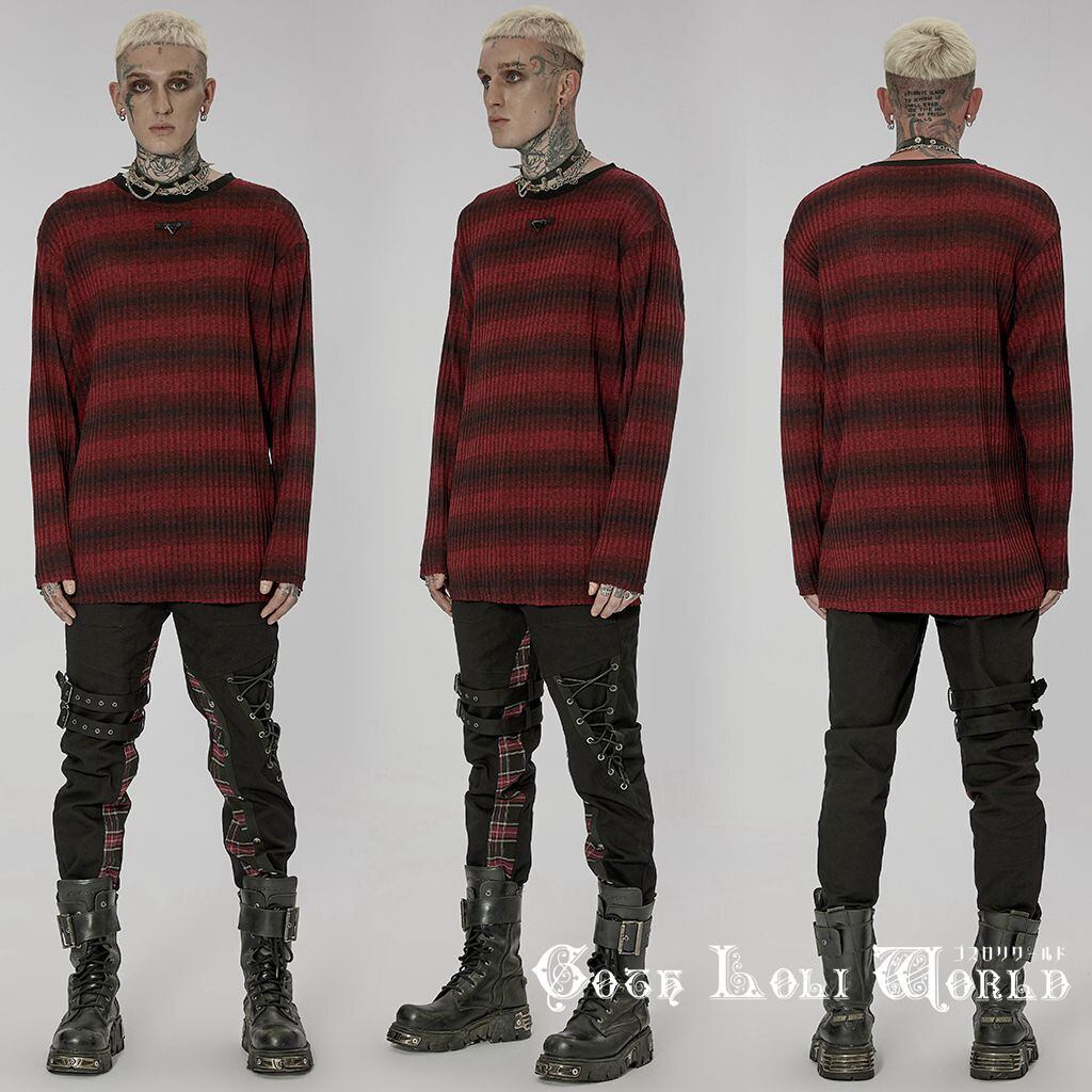 【即納/送料無料】WT-735TCM-BK-RD パンク風ストライプ セーター ニットソー 黒赤色 メンズ ファッション ゴシック ゴスロリ パンク ロック ロリィタ ビジュアル系 V系 モード系 地雷系 | ゴスロリワールド
