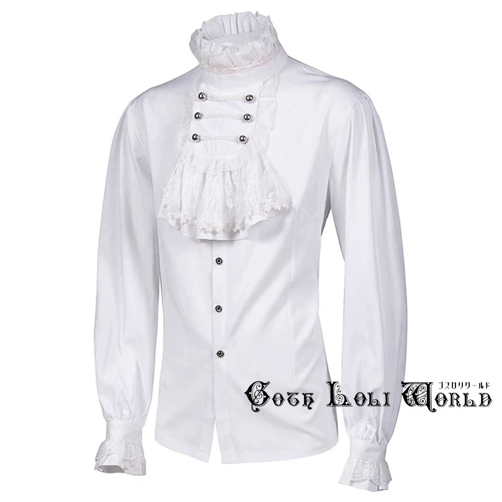 Y-522W-CE アスコットフリルタイ付 ブラウス メンズ ファッション ゴシック ゴスロリ パンク ロック スチームパンク ビジュアル系 ヴィジュアル系 V系 モード系 地雷系 サブカル コスプレ ライブ ステージ 舞台 仮装 個性的 ハロウィン 衣装