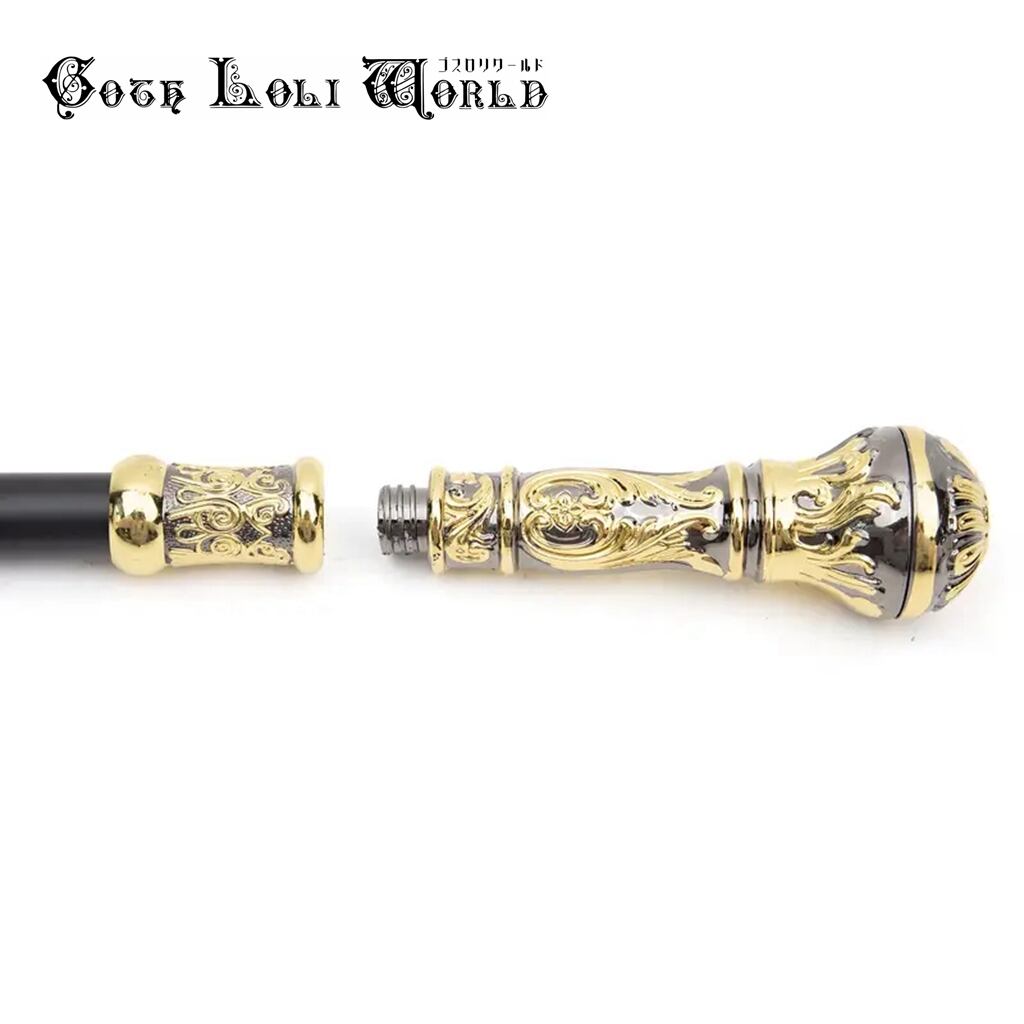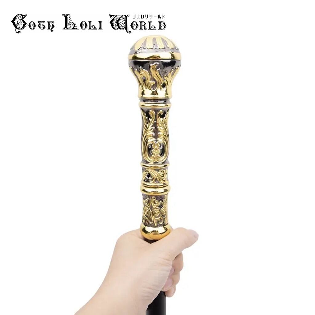 【即納/送料無料】ゴスロリワールド AS012 ゴージャス ステッキ 黒金色 杖 つえ 高級 銀色 金属 ファッション ゴシック パンク ロック ビジュアル系 ヴィジュアル系 V系 | ゴスロリワールド