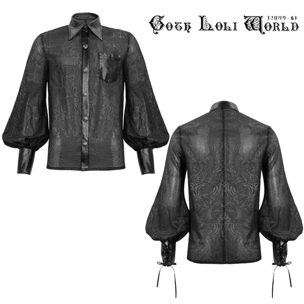 【即納/送料無料】SHT085 フェイクレザーシースルードッキング ブラウス メンズ ファッション ゴシック ゴスロリ パンク ロック スチームパンク ビジュアル系 ヴィジュアル系 V系 モード系 地雷系 | ゴスロリワールド