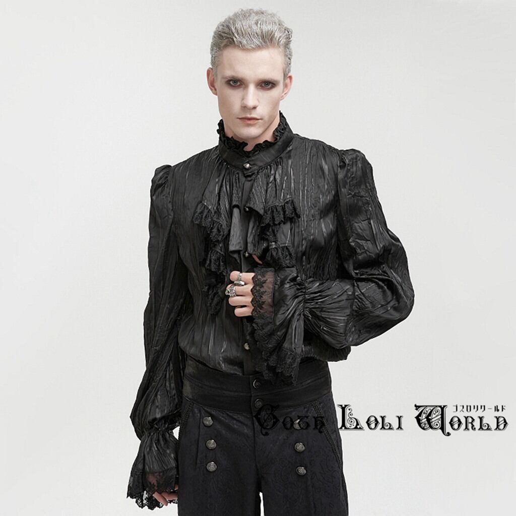 【即納/送料無料】SHT092 フロントフリルポエットスリーブ ブラウス メンズ ファッション ゴシック ゴスロリ パンク ロック スチームパンク ビジュアル系 ヴィジュアル系 V系 モード系 地雷系 | ゴスロリワールド