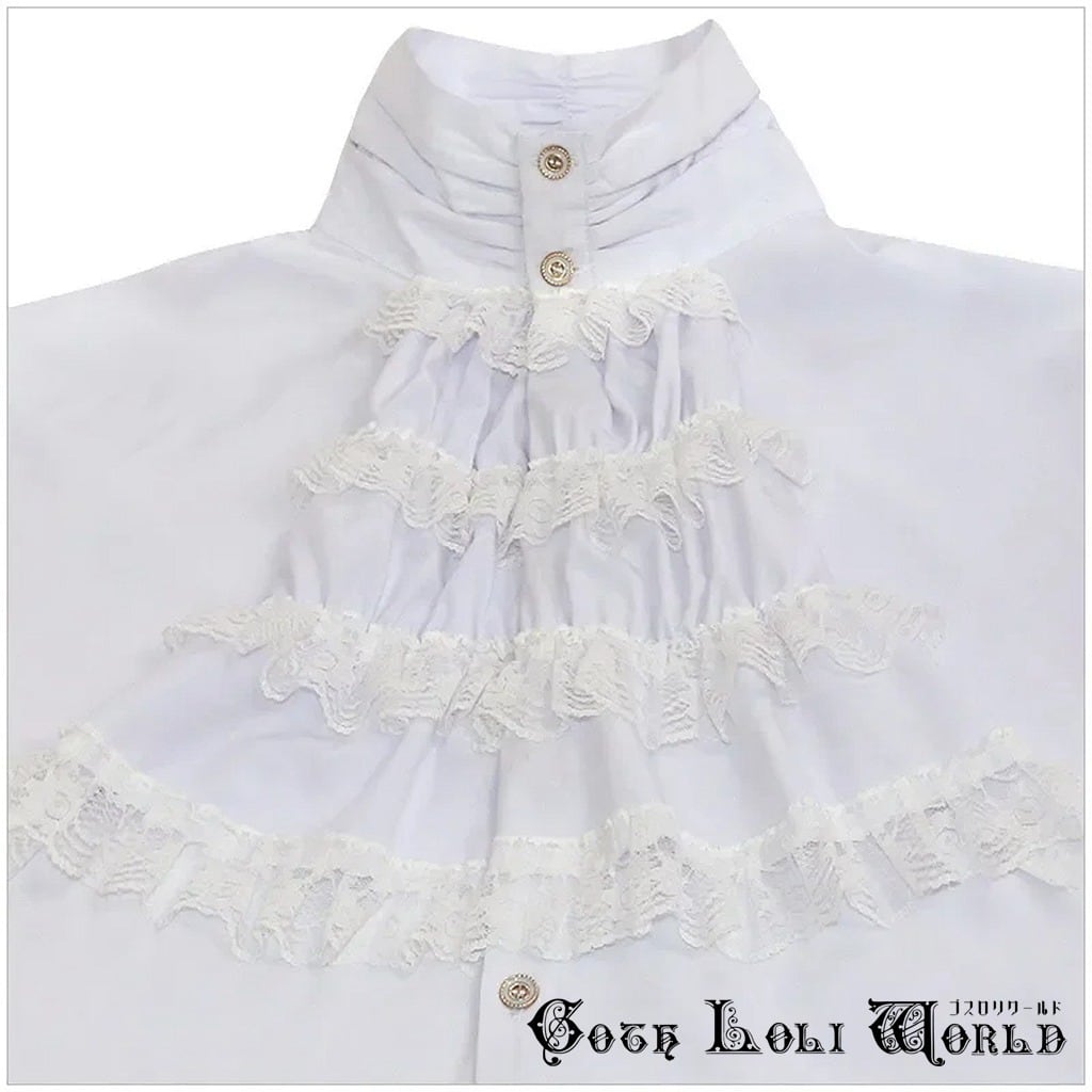 【即納/送料無料】SJM127CE 飾りボタンシャボ付 ブラウス 白色 ホワイト メンズ ファッション ゴシック ゴスロリ パンク スチームパンク ビジュアル系 ヴィジュアル系 V系 モード系 地雷系 | ゴスロリワールド