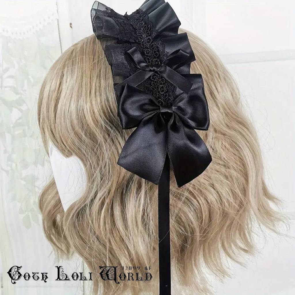CE-AS002 ロリータフリルリボンヘアピン付 ヘッドドレス ファッション ゴシック ゴスロリ パンク ロック スチームパンク ビジュアル系 ヴィジュアル系 V系 モード系 地雷系 サブカル コスプレ ライブ ステージ 舞台 仮装 個性的 ハロウィン 衣装