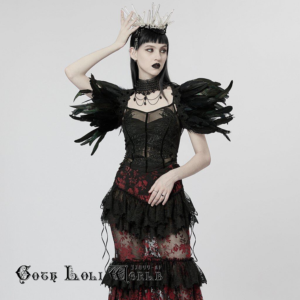 WS-551BDF-BK ゴシックフェイクフェザーつけ ショルダー 黒色 ファッション ゴシック ゴスロリ パンク ロック スチームパンク ビジュアル系 ヴィジュアル系 V系 モード系 地雷系 サブカル コスプレ ライブ ステージ 舞台 仮装 SM サイバー ハロウィン 衣装