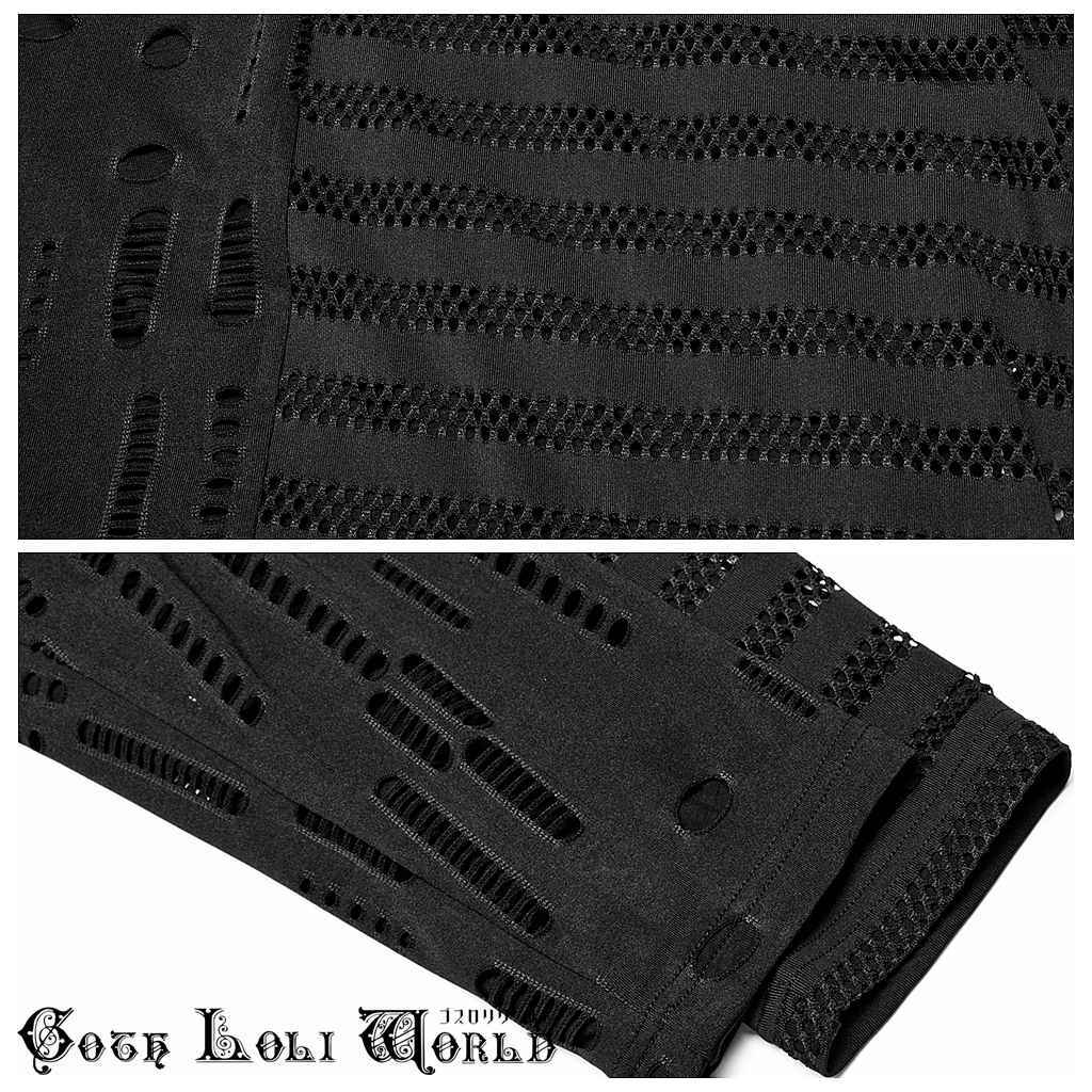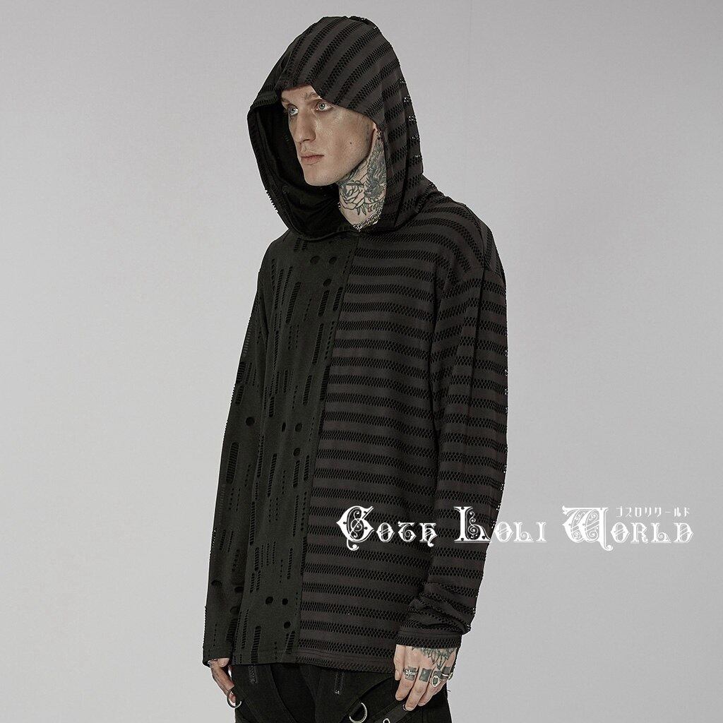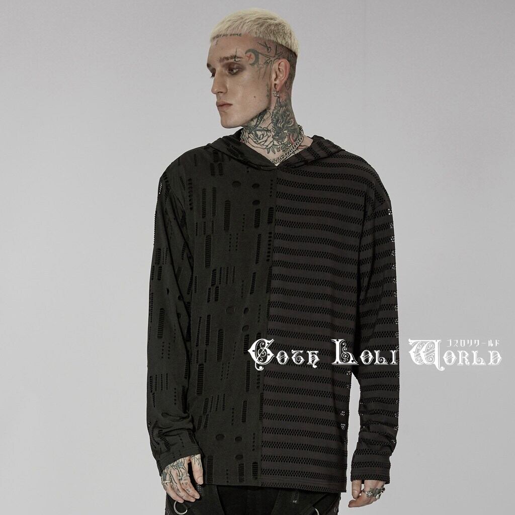 【即納/送料無料】WT-737TCM-BK メッシュボーダーダメージフード付 カットソー メンズ ファッション ゴシック ゴスロリ パンク ロック スチームパンク ビジュアル系 ヴィジュアル系 V系 モード系 地雷系 | ゴスロリワールド