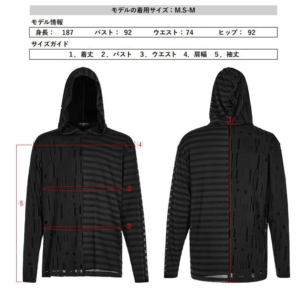 WT-737TCM-BK メッシュボーダーダメージフード付 カットソー メンズ ファッション ゴシック ゴスロリ パンク ロック スチームパンク ビジュアル系 ヴィジュアル系 V系 モード系 地雷系 サブカル コスプレ ライブ ステージ 舞台 仮装 個性的 ハロウィン 衣装